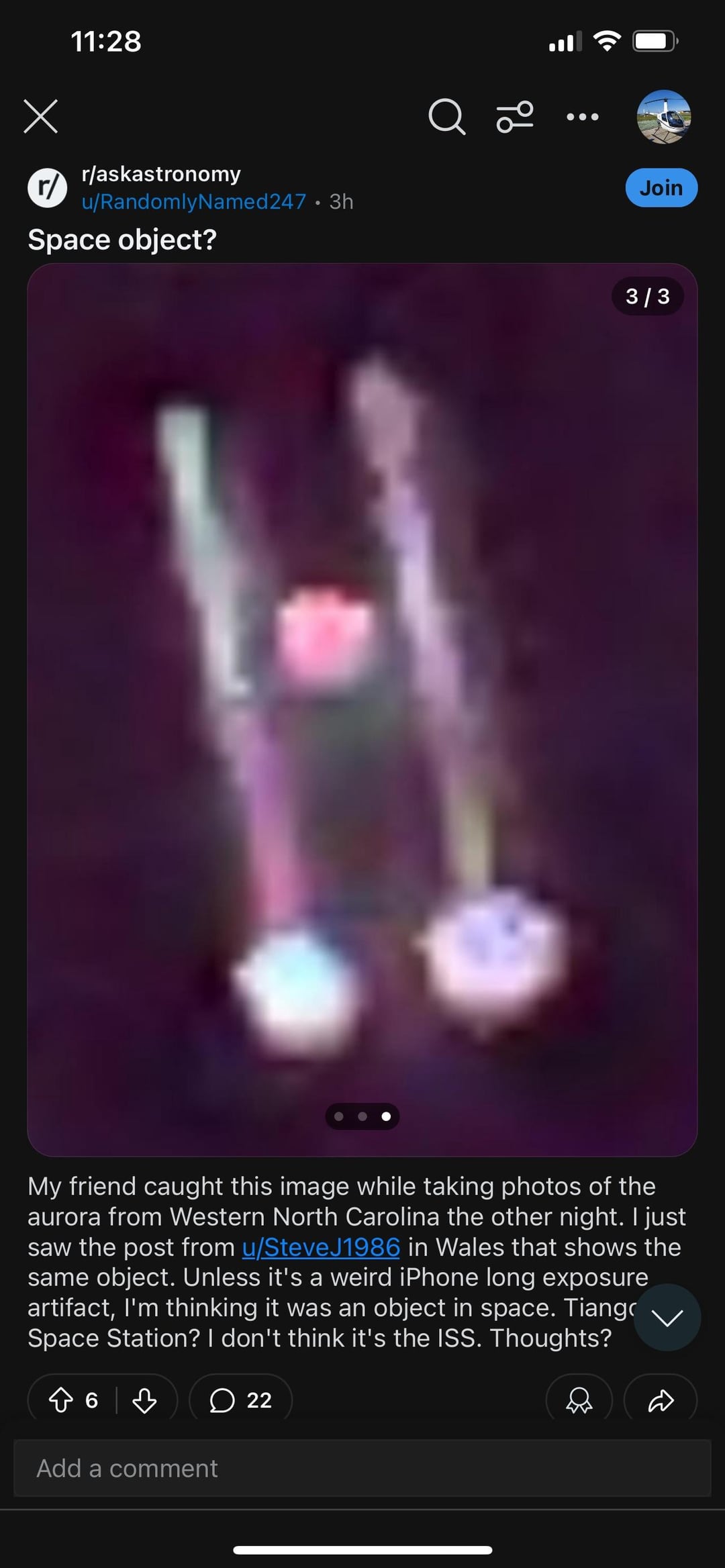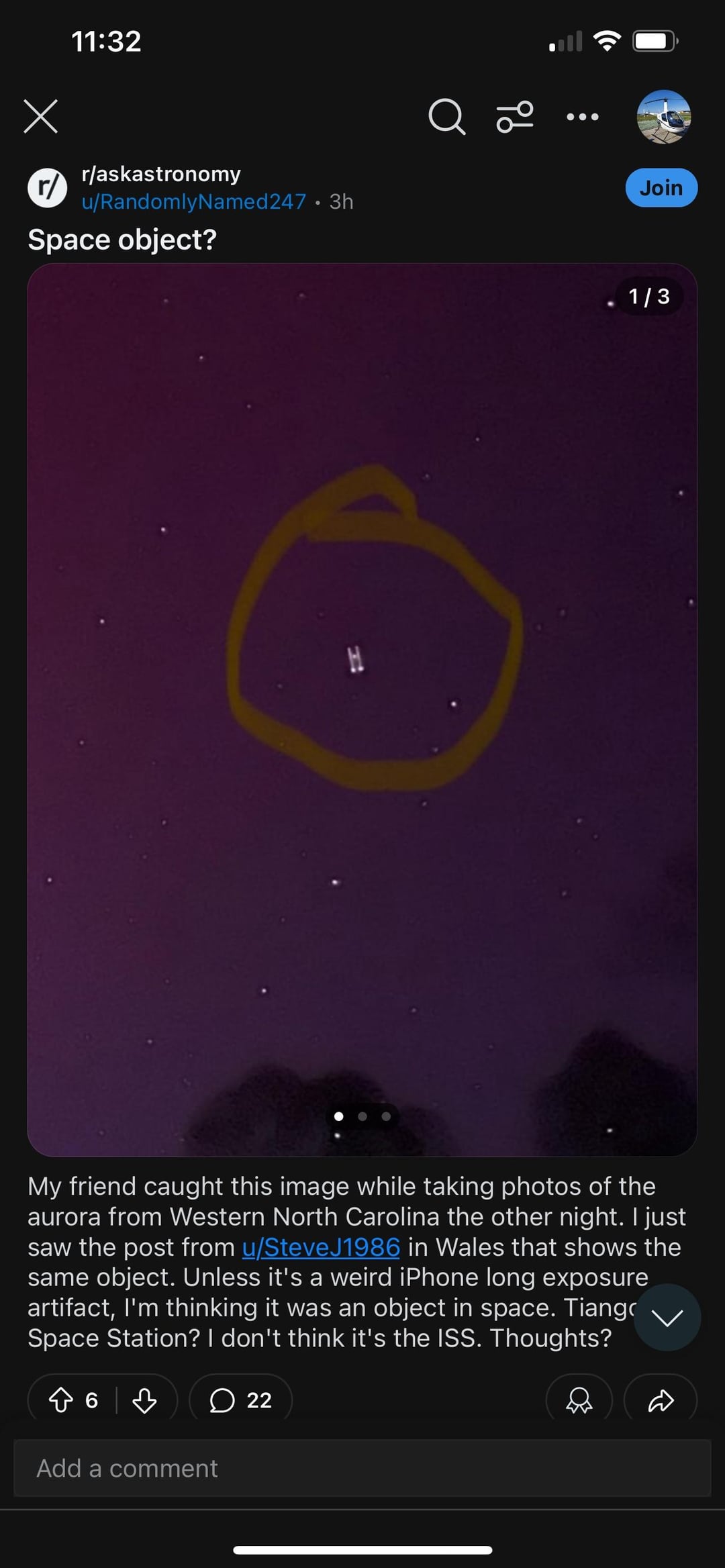 This popped up on my feed and I thought it was interesting seeing as we have so many people taking pictures of the night sky currently something was bound to be captured. by Ok-Breadfruit-3523