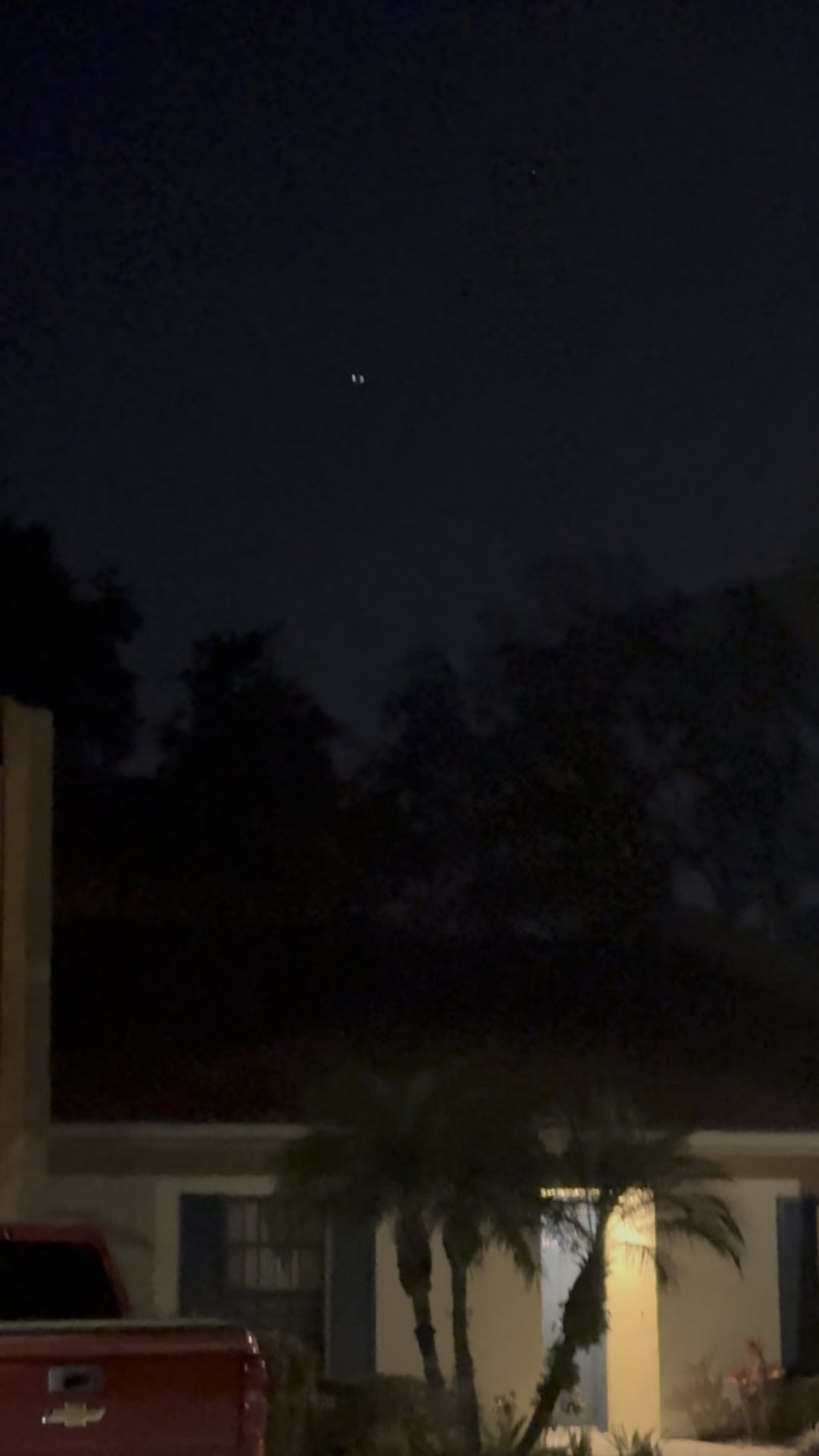 What the hell is this thing? Compared to the giant oak trees it descends behind and the distance between the lights on the craft, this thing must have been gigantic. I also filmed it from several hundred yards away (not sure about exact distance but it was a ways).