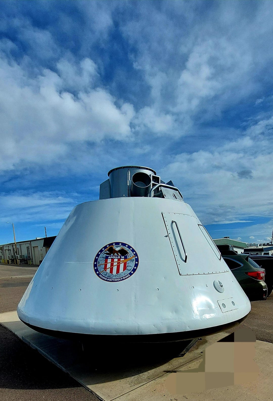 That isn’t the Apollo 16 capsule. [Here it is](https://www.reddit.com/r/space/comments/1aj2ewp/a_man_and_his_spaceship_50_years_later_charlie/) at the US Space and Rocket Center in Huntsville, AL, with Charlie Duke standing before it some 50 years after his flight on it (he was the LMP).