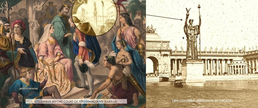 The Columbia Expositions, supposedly named after Colombus but this is bullshit. You can see on the map that America was often labeled Columbia. What they call Triumphal Arch was originally known as a Gate/Bridge.