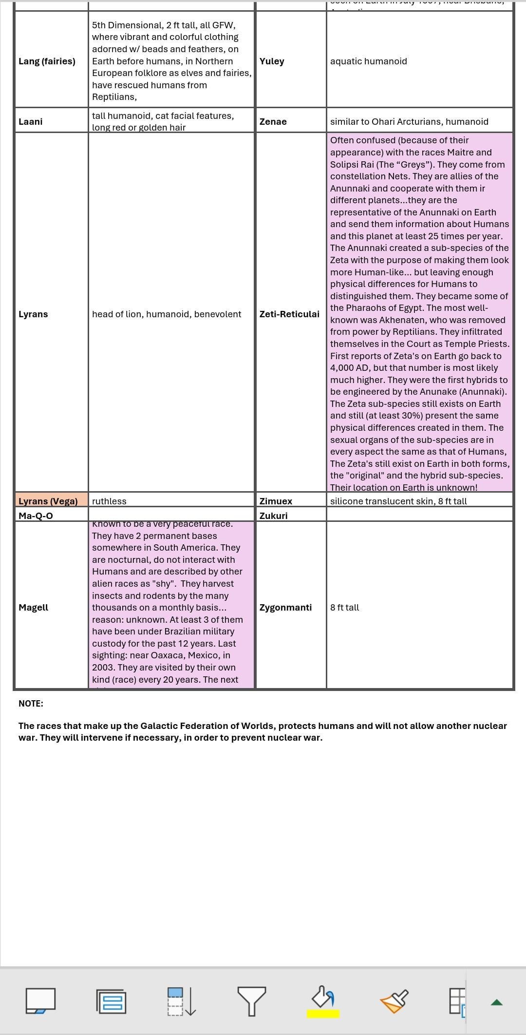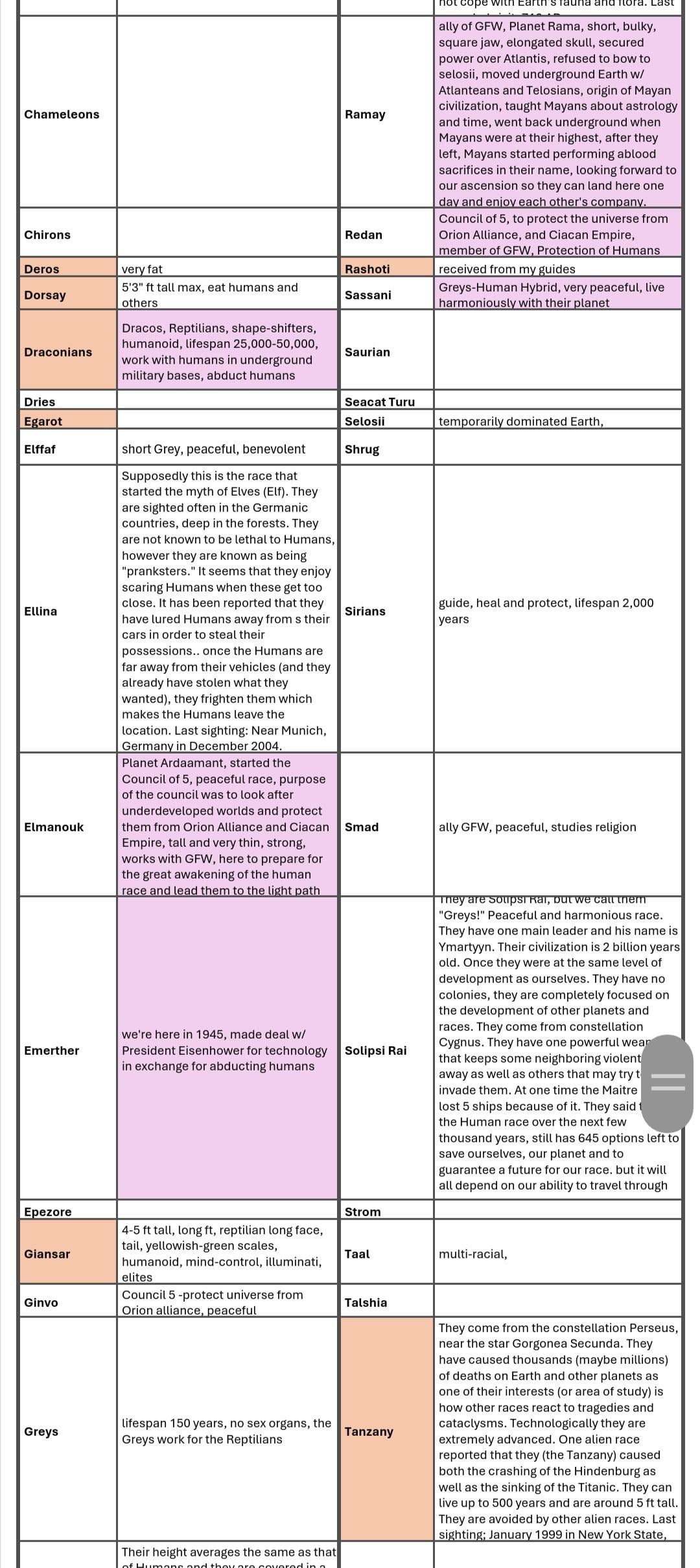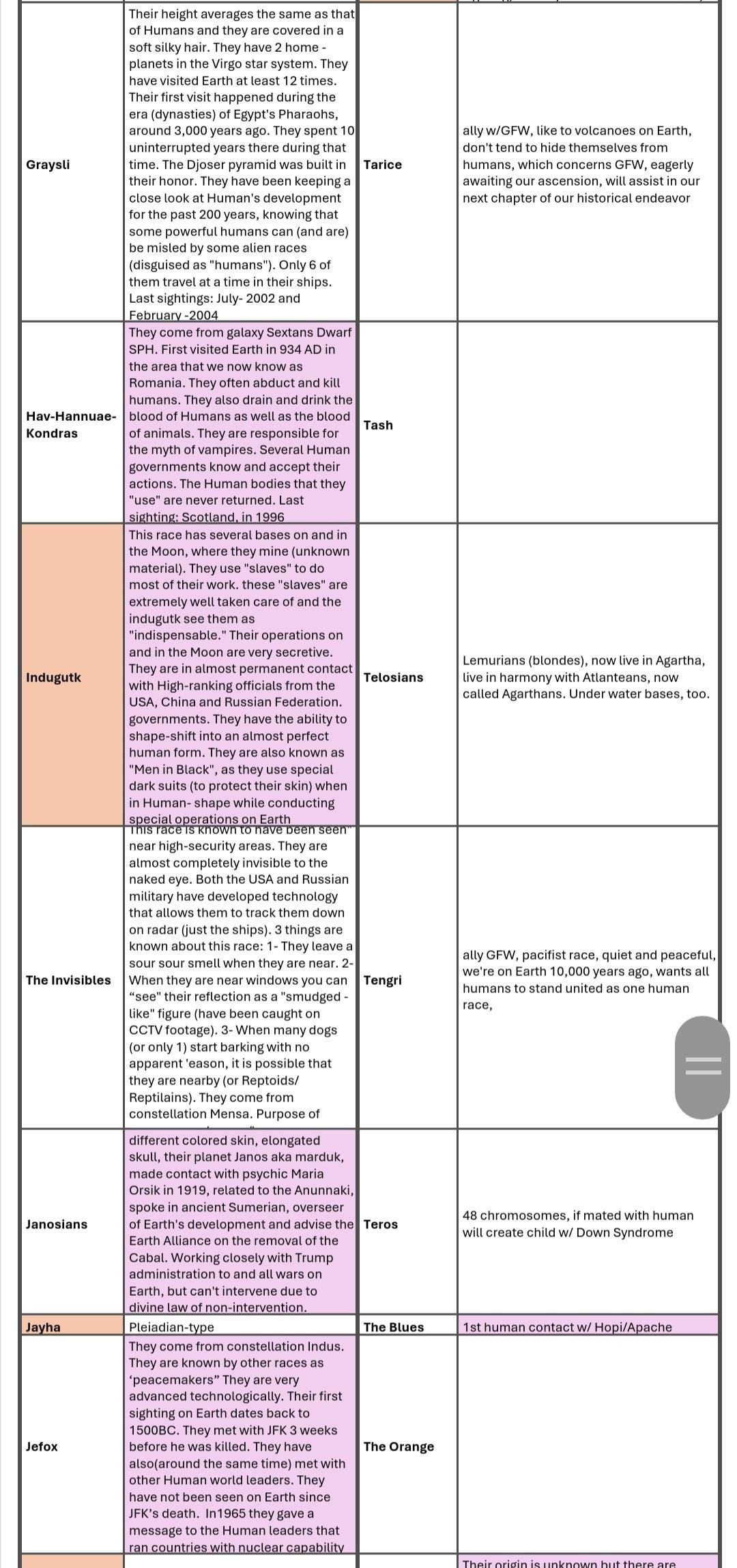 I compiled this list from Astral Legends TV: and The Book of Alien Races written by KGB. I confirmed every alien race with my guides and ny Arcturian buddy, Bloké. There's some pretty interesting information on this list. Blessings to all.