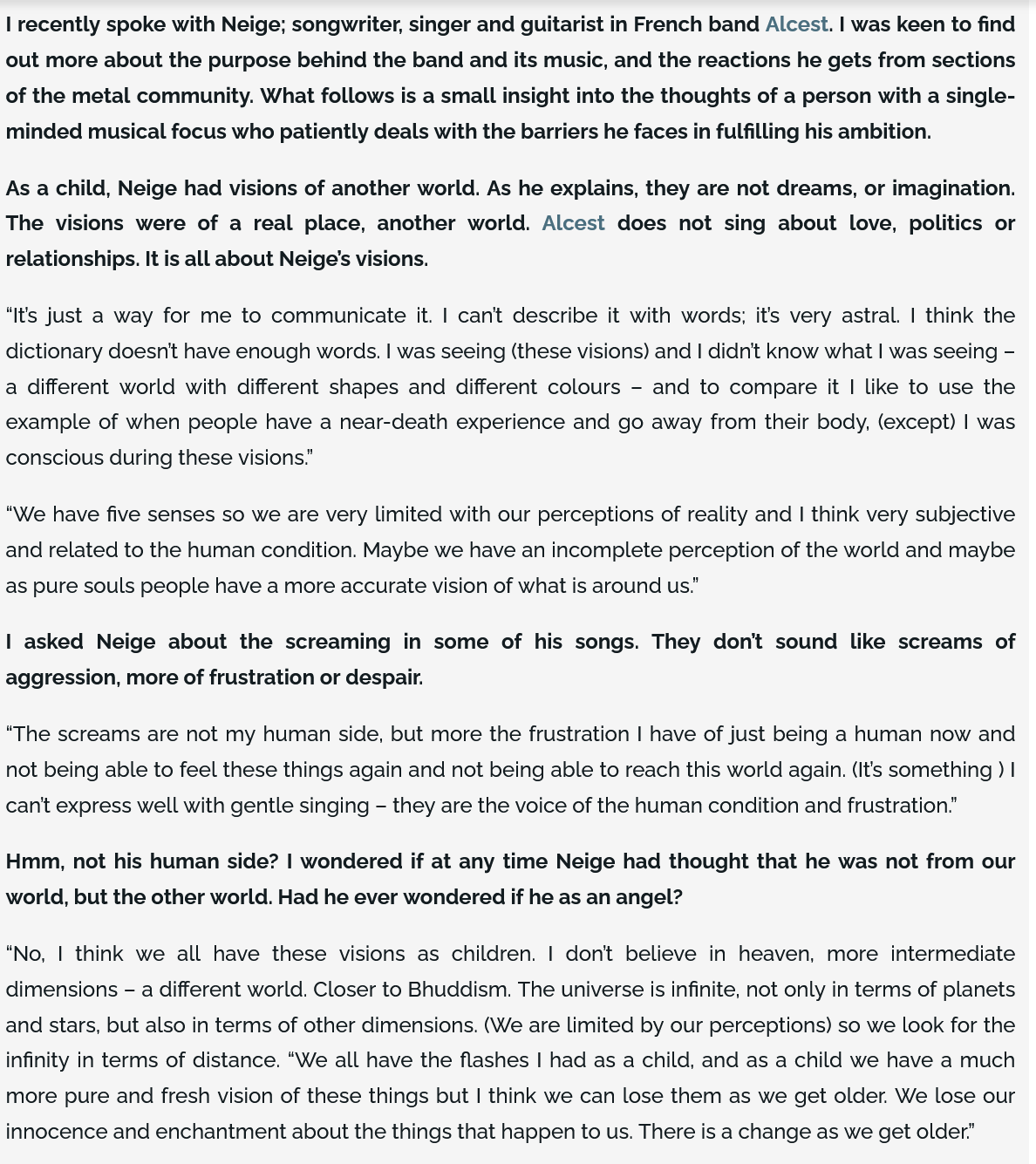 Been a fan of Alcest's music for a few years now and was lucky to see them live on their USA tour in February, just thought this group might enjoy his insight on other worlds.