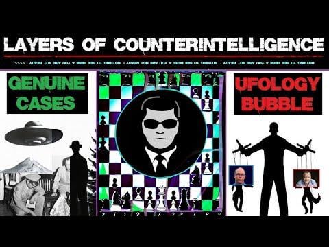 The Layers of Counterintelligence (in Ufology): is a short documentary containing thought experiments to visualize the manifestations of an active disinfo force working in the ufology bubble and questions regarding an active hidden UFO intelligence group also often labeled simply : the man in black