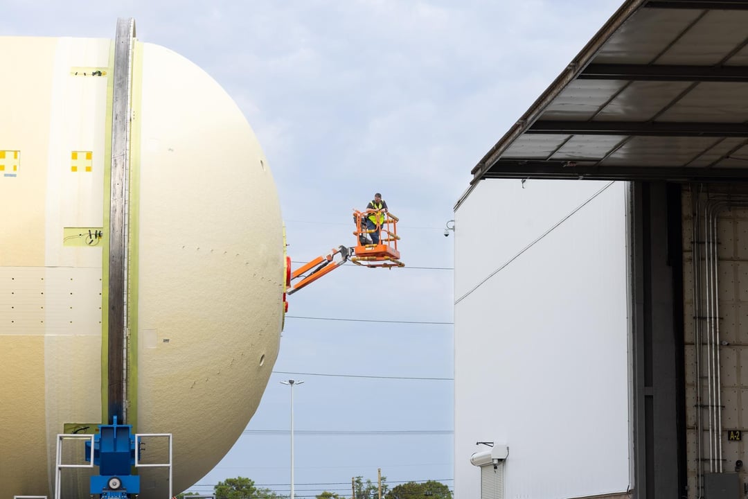Artemis III SLS LOX tank heading to final assembly before core stage mating begins [credit: NASA/Evan Deroche] by helicopter-enjoyer