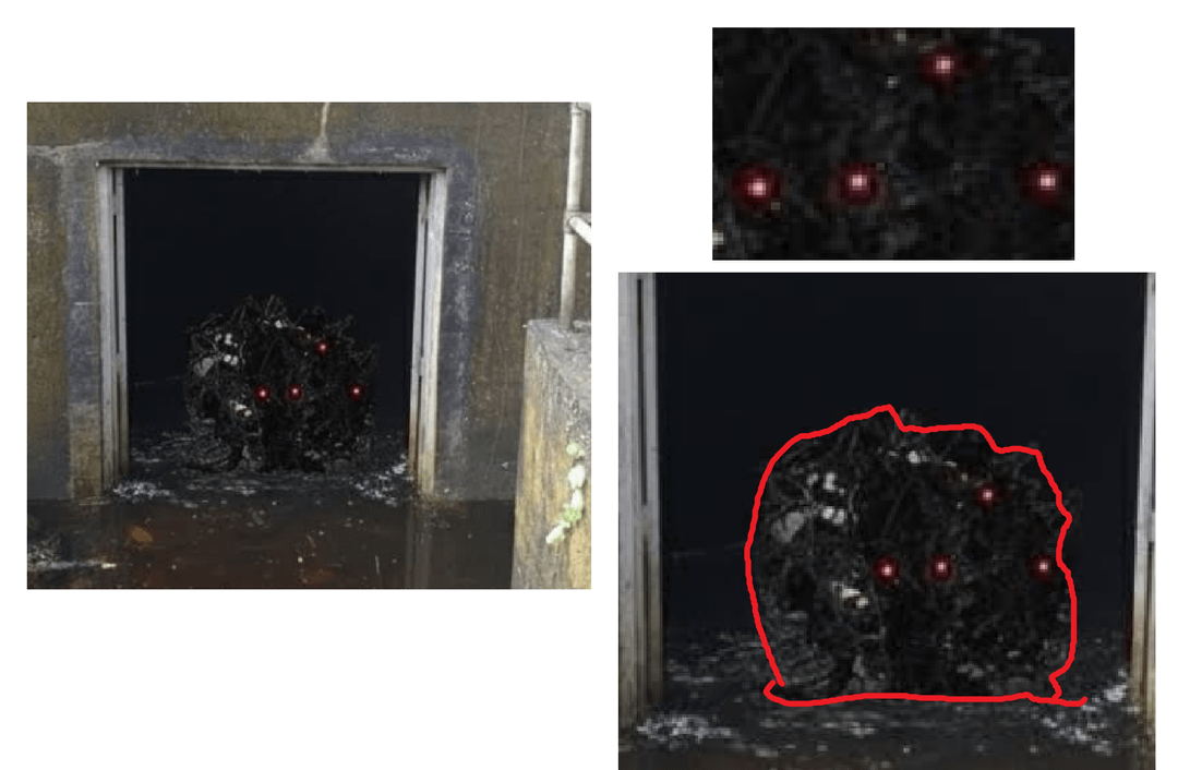 K25, from the looks of it, looking from the door passage, has grown seem to be around 3 feet wide with rounded shape, possibly with rest of it's body under water