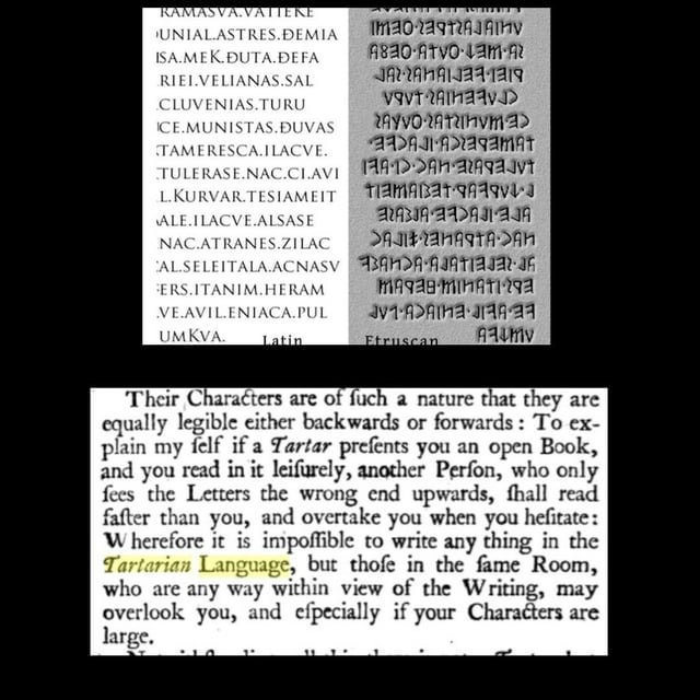 “ What you call ‘rome’ and the language of ‘Latin’, is really just the Usurped language of Etruscan.. read backwards”