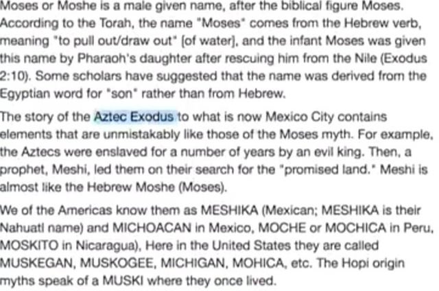 The aztec exodus from Aztlan, The bliblical meshecs, Mexica, Moche. The native Moors (Turks) were high priests of Anu, aka, the Magi, who were people of the Sea or people of the waters (sailors, merchants, and pirates). (Sumer-Anu, Japan-Ainu "Naga-Saki"). Mariner, Marines, Mermaid (Mer-men/Moormen), Mooring a boat, Moors (land by the waters), and Morini are all terms dealing with the Moors or sea people. Turks, Moors, Phoenician, Gaul (French), Gullah Geechee, Persians, Sumerians, Cushite, Canaanites, Vikings, Welsh, etc..