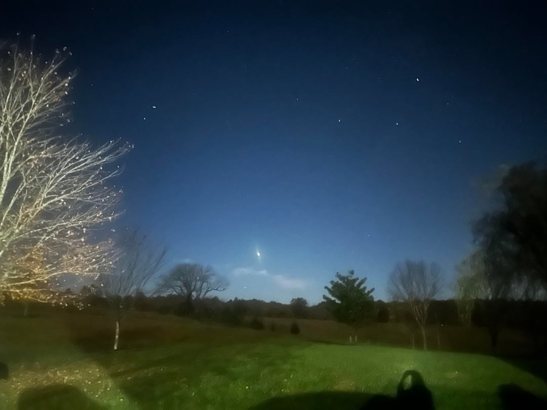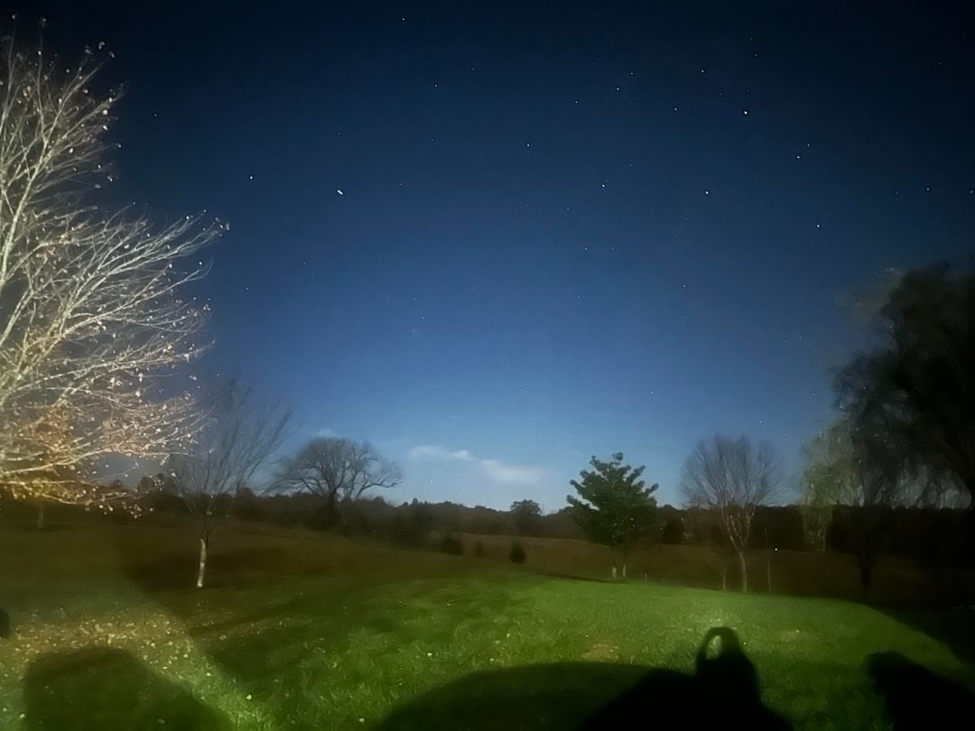 Tonight I was outside bringing my dogs in before bed. I looked up at saw what I thought was a super bright star. It wasn’t moving, was just really bright and kind of an odd shape. Sort of long for a star I thought. I decided to take a picture of it and a second later wanted to get another picture and all of the sudden it was gone. I’d love to sleep tonight so if anyone could explain this I would appreciate it.
