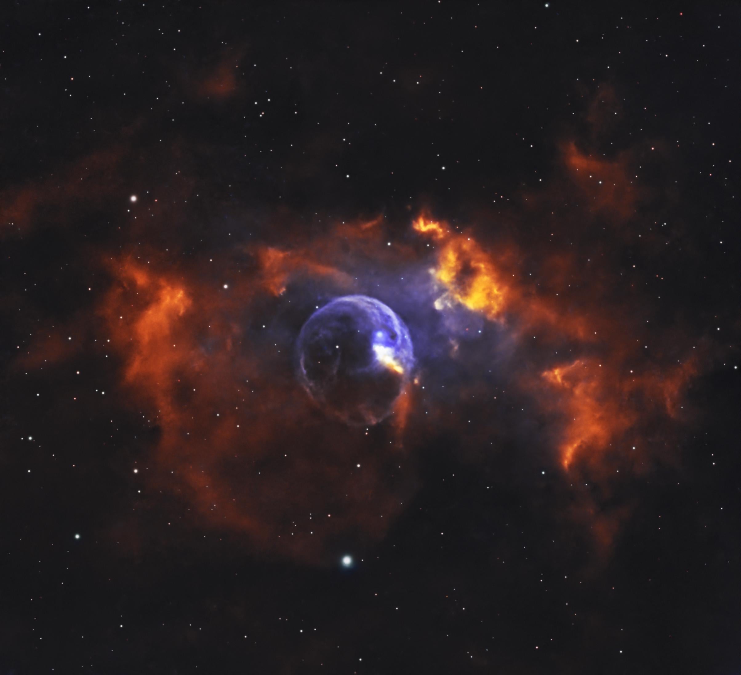 Particular_Limit_ on November 8, 2025 5:17 am Telescope : Meade 10″ LX200-GPS + .6 x Reducer Camera : ZWO 2600MC (-10 C) Filter: Optolong L-Extreme Guide Scope : 50 mm Starboosa guidescope Guide Camera : ZWO ASI120MM Mount: ZWO AM5 Accessory: ASIAIR Plus Date: 6 November 2025 Location: Los Angeles (Bortle 9) Subs: 28×600s = 4h40′ Gain: 100 Workflow (Pixinsight): Background removal. BlurXTerminator. Noise reduction. Histogram stretch. Star Reduction & Removal. HOO Palette. Color Mask. Deconvolution. Curves transformation. HDR Transformation. Local histogram Equalization. Star Recombination. Curves Transformation.