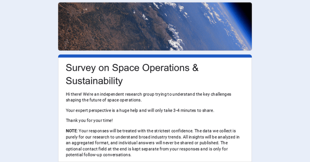 I am part of an independent research group, currently researching the most pressing operational problems the space industry faces today.