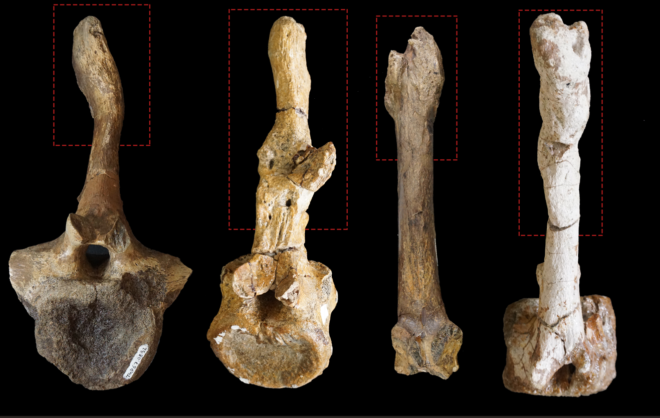 Examples of hadrosaur vertebrae with healing fractures suggest an external force pressed on top of them. (c) Filippo Bertozzo/iScience