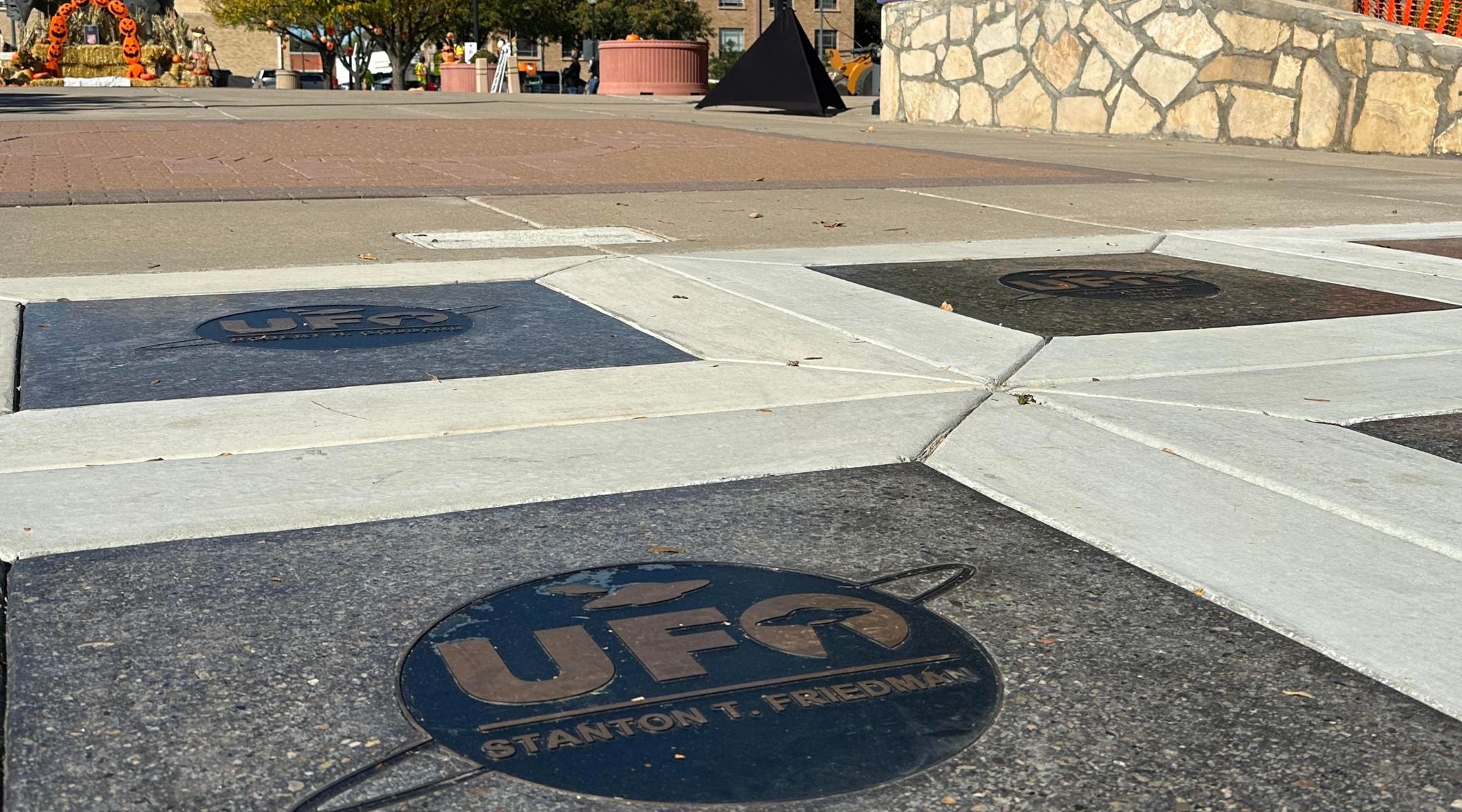 The plaque honoring the late Jewish scientist Stanton T. Friedman and his research on UFOs in downtown Roswell, New Mexico. (Larry Luxner)