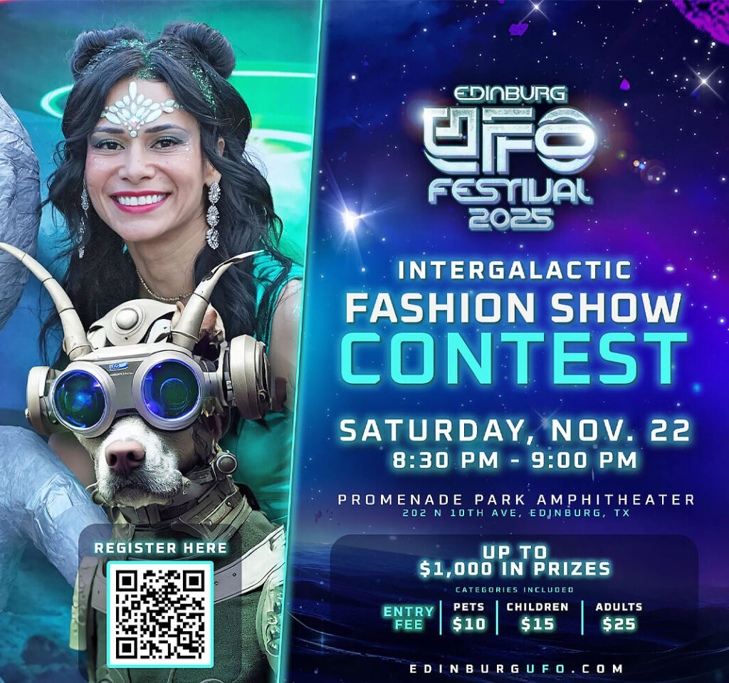 The celebration culminates in downtown Edinburg, transformed into an interstellar playground with vendors, sci-fi merchandise, food trucks, carnival rides, LED displays, and a nighttime laser show. The Intergalactic Fashion Show—featuring adult, child, and pet categories—offers up to $1,000 in prizes. Fire dancers, aerial performers, dancing robots, and family-friendly attractions round out the night’s entertainment.