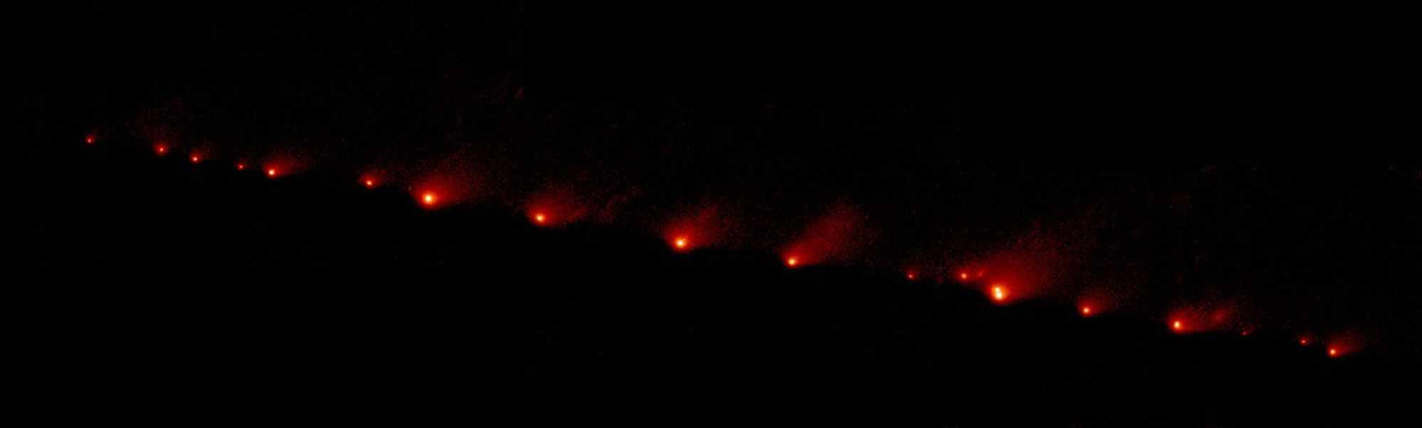 The impacts that started on July 16, 1994 ended on July 22, 1994, were captured by NASA’s Galileo orbiter that was enroute to Jupiter as SL9 fragments collided with the southern hemisphere of the planet at a speed of 60 km/second. The spectacular impacts were more visible than the famed Great Red Spot of the planet for months.