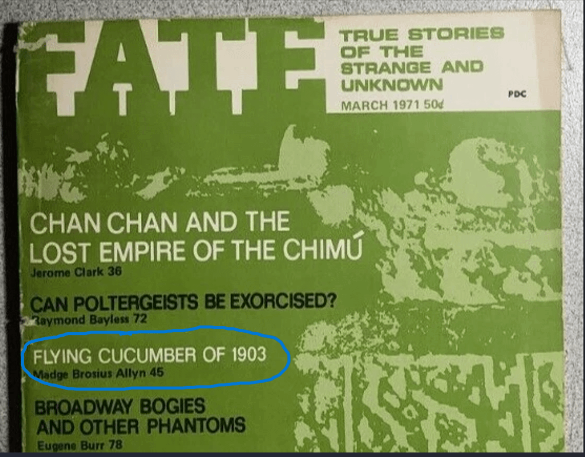 That was the title of an article by Madge Brosius Allyn that appeared in FATE magazine, Issue No. 252, March 1971.