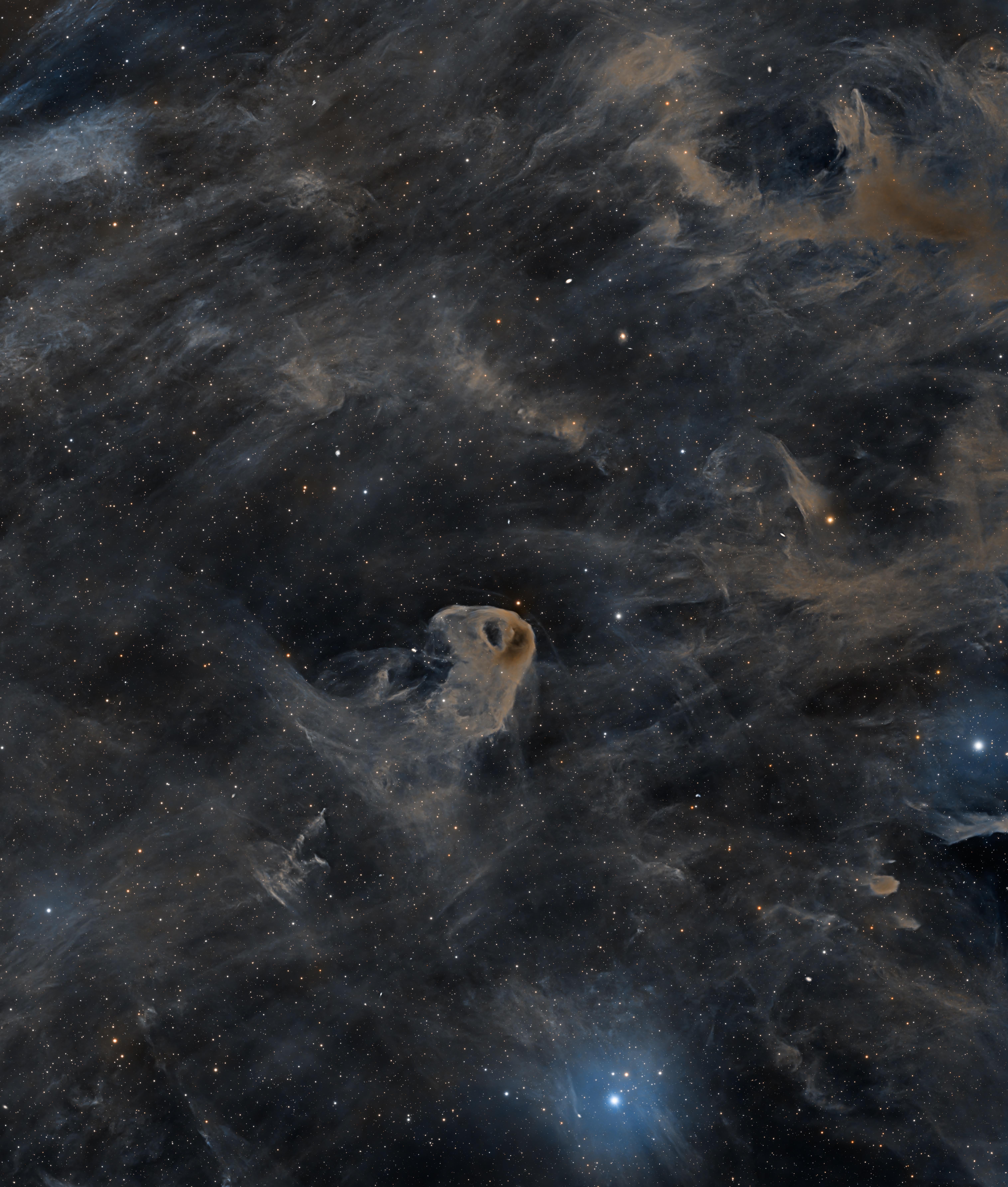 There are many regions in the Milky Way where what is known as “cosmic dust” or “interstellar dust” is abundant. This dust drifts between the stars in our galaxy and lies relatively close to us, only about 400 light-years away. At times, this dust forms beautiful shapes from our viewpoint on Earth, like this nebula. Astronomers imagined it resembling a small eagle, so they named it the Baby Eagle Nebula