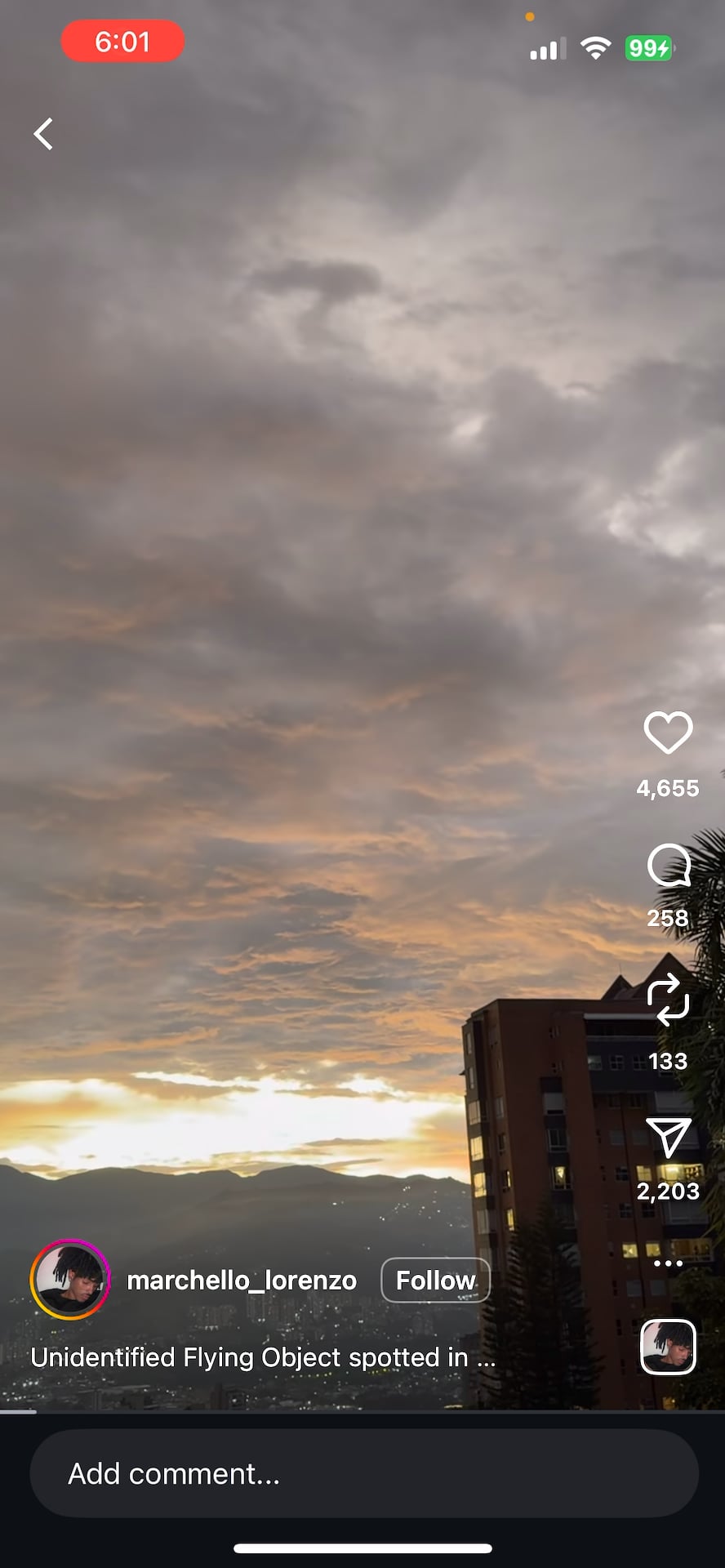 “Unidentified Flying Object spotted in Medellin Colombia December 7th 2025. Diamond Disc Saucer shape thats spinning while vertically going up with a flame coming from beneath.