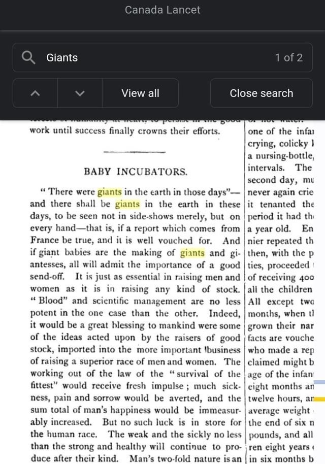 Ancient writers documented that the catastrophe was deliberate due to the genetic manipulation by the fallen. These Expositions, which I've proven were staged events, occured immediately after worldwide Earthquakes during Late 17-early 1800s. They have historically taken certain DNA to create beings that would carry out their nefarious agenda. Theres an excerpt from Martin Couney(exposed for not being a Dr)who held an exhibit called Kinderbrutanstalt which, when translated, literally means “child hatchery,” … opening sentence says "There were giants in those days…and will be again"