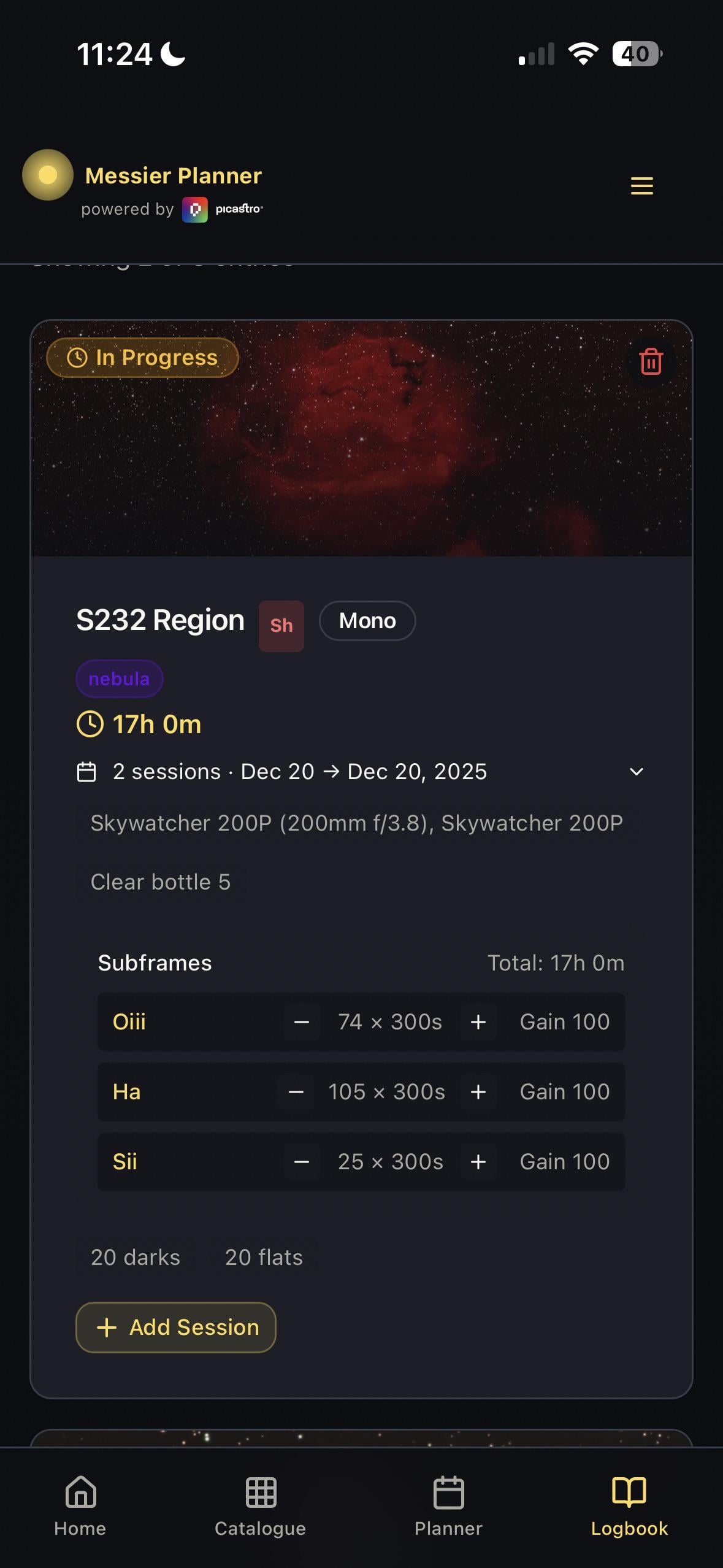 I did this free app for the Astro community and I’m gradually adding all of my images objects to the logbook. Planning and logging should be more exciting than a csv of a pen and paper lol. Check it out messierplanner.co.uk by PicastroApp
