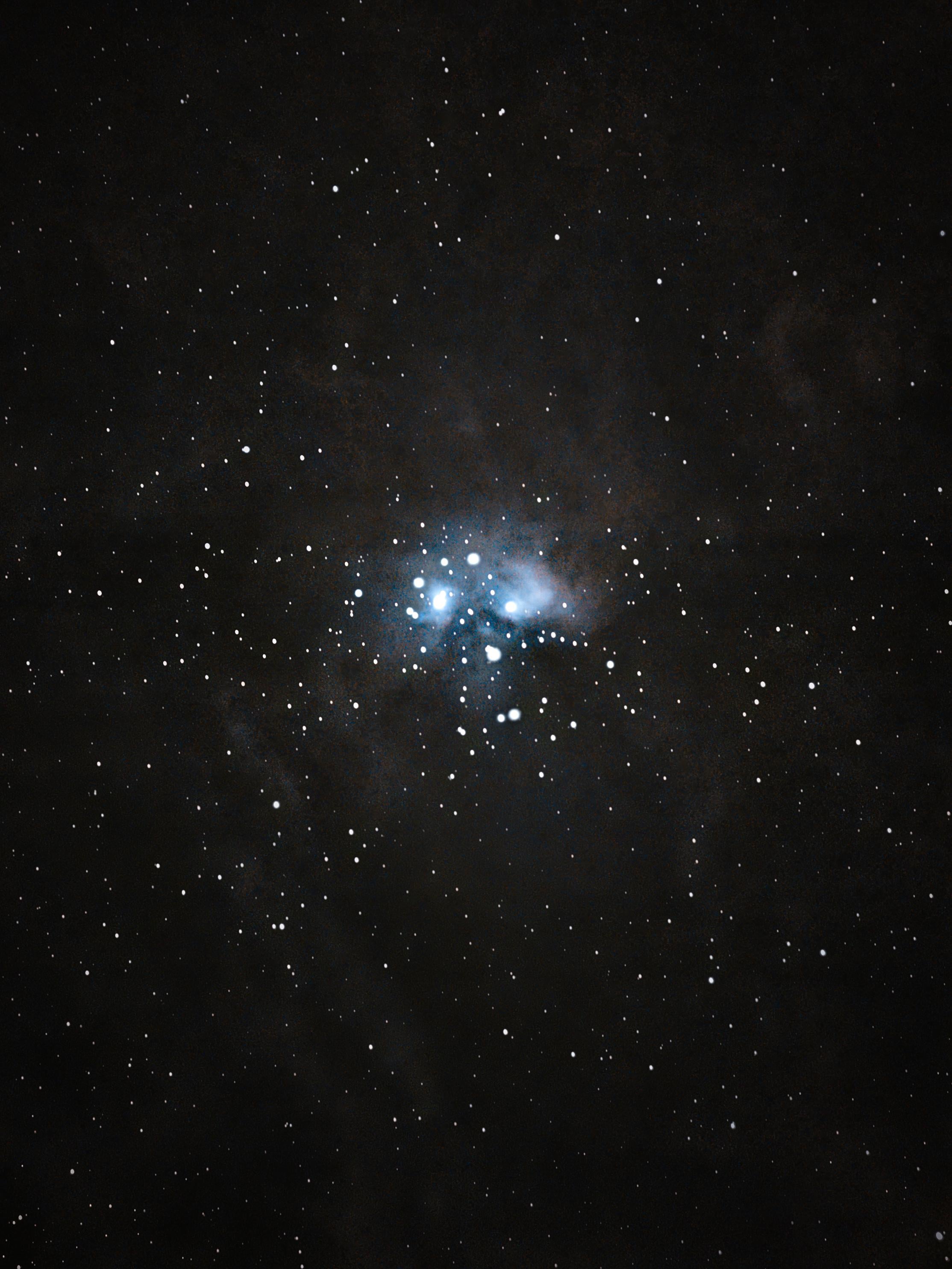This is my first attempt at capturing the Pleiades, using a Rokinon 85mm f/1.4 lens and a Nikon D5600 DSLR.