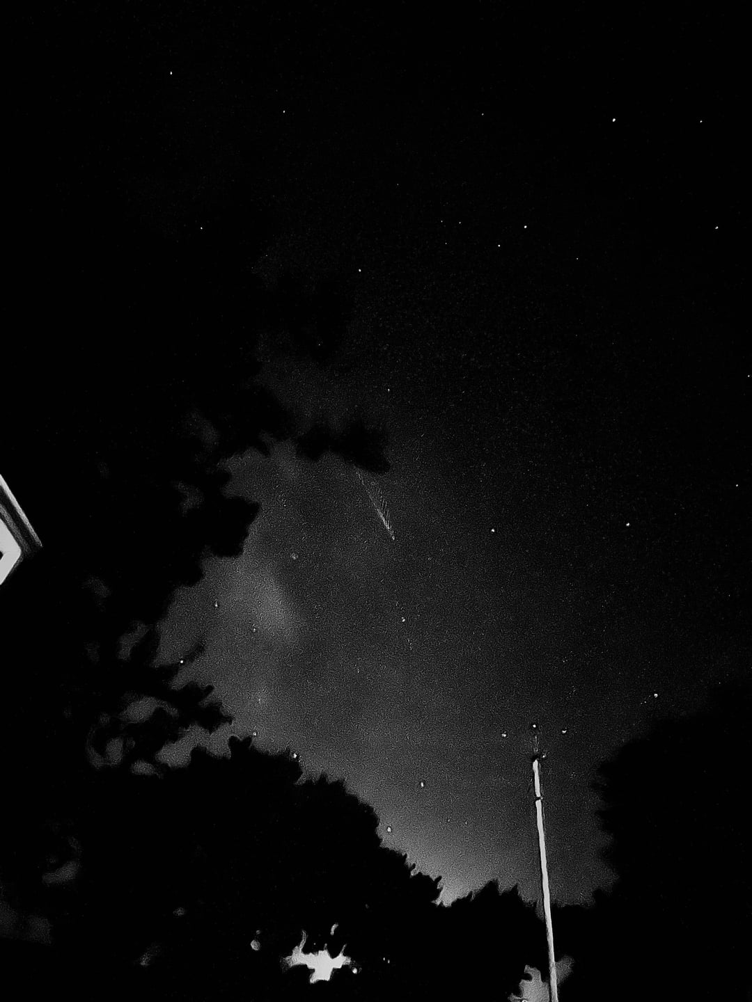 For context, the first picture is black-and-white with exposure boosted but no other alterations have been made, the second picture is the original, and the third picture is of the sky right after it flew away.