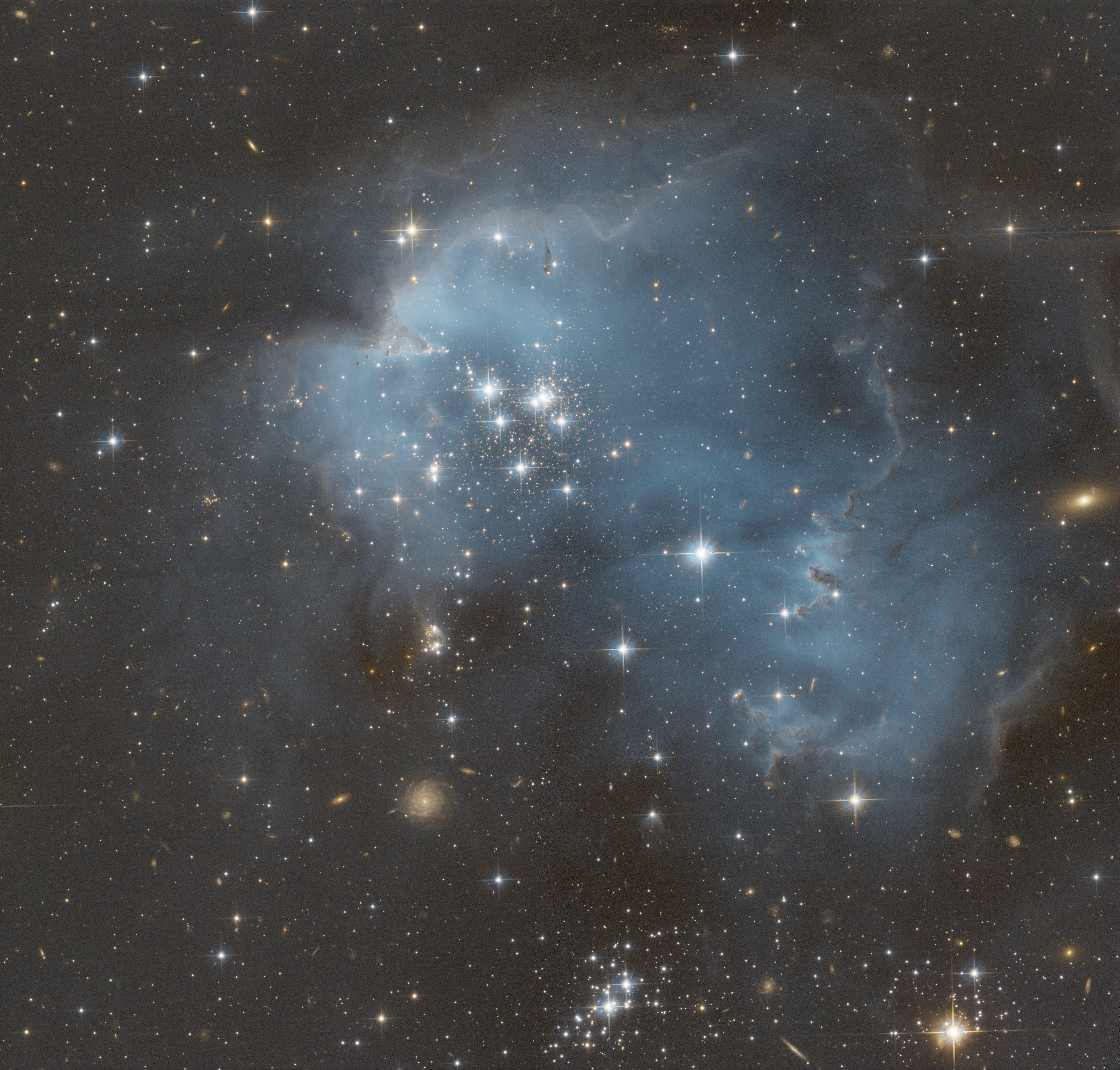 NGC 602, per realizzare quasta foto ho scaricato alcuni file dal sito Hubble Legacy Harchive ed ho usato i filtri f814w e f555w, ho elaborato con Pixinsight. Crediti: Basato su osservazioni effettuate con il telescopio spaziale Hubble della NASA/ESA e ottenute dall'archivio Hubble Legacy, frutto di una collaborazione tra lo Space Telescope Science Institute (STScI/NASA), lo Space Telescope European Coordinating Facility (ST-ECF/ESA) e il Canadian Astronomy Data Centre (CADC/NRC/CSA).