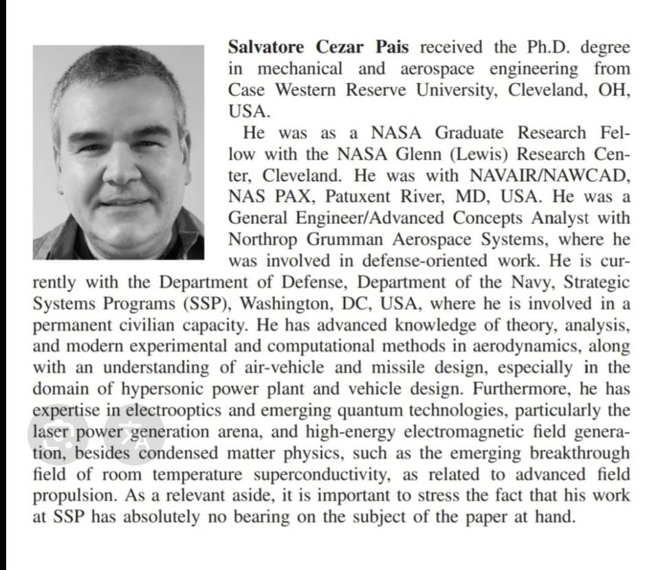 Between 2016–2019, the U.S. Navy filed several advanced physics patents through Dr. Salvatore Cezar Pais (Naval Air Warfare Center), including: