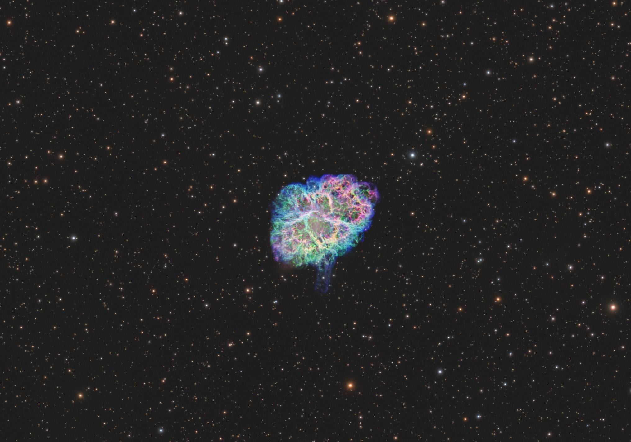 First target of the year is the Crab Nebula. This nebula was formed as a result of a super nova with pulsar winds. It's about 6,500 light years from Earth and is bright enough to be seen with binoculars.