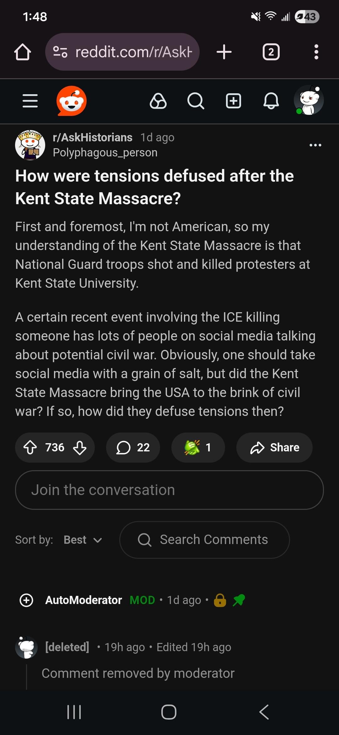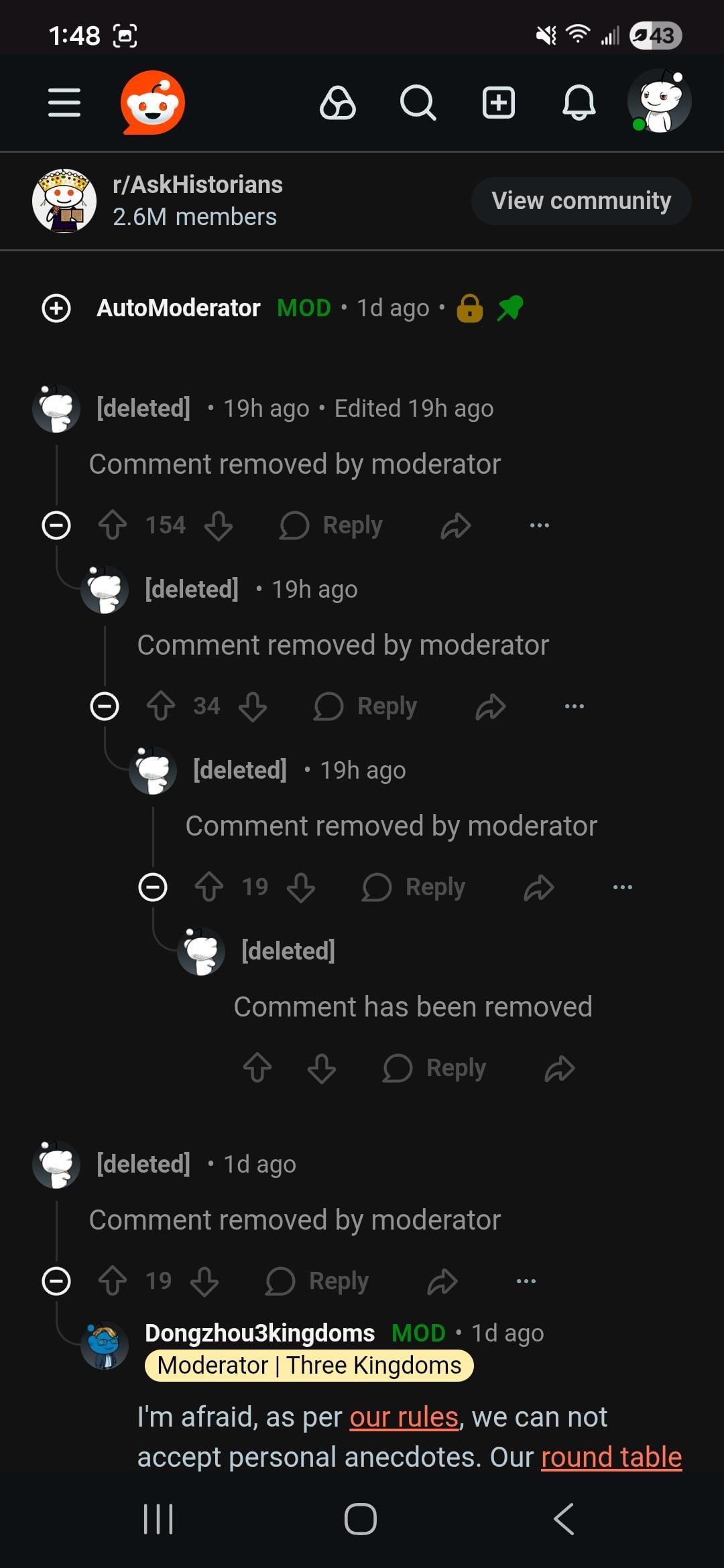 Greenzoid2 on January 26, 2026 11:10 am It’s r/askhistorians, there’s a high bar to be allowed to make top level comments and the rest get deleted on any topic.