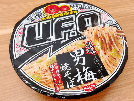 First of all, I will try ‘Nissin Yakisoba UFO Bukko Otoko Ume Yakisoba’.