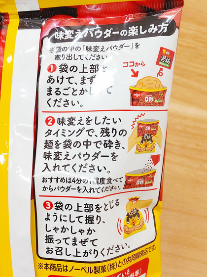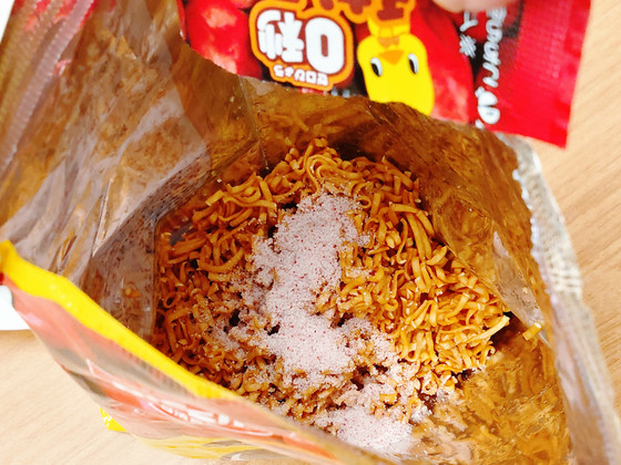 This is what it looks like when you lightly shake the bag and take it out. The saltiness of the 0-second Chicken Ramen is enveloped in the sourness of the Otokoume plum, creating a wonderful flavor change. This also doesn’t leave a sour aftertaste, so it’s a well-balanced combination of ‘0-second Chicken Ramen with the taste of Otokoume plum.’