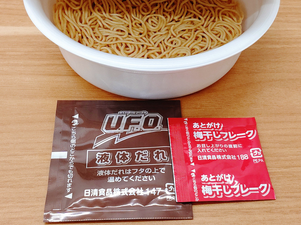 First of all, I will try ‘Nissin Yakisoba UFO Bukko Otoko Ume Yakisoba’.