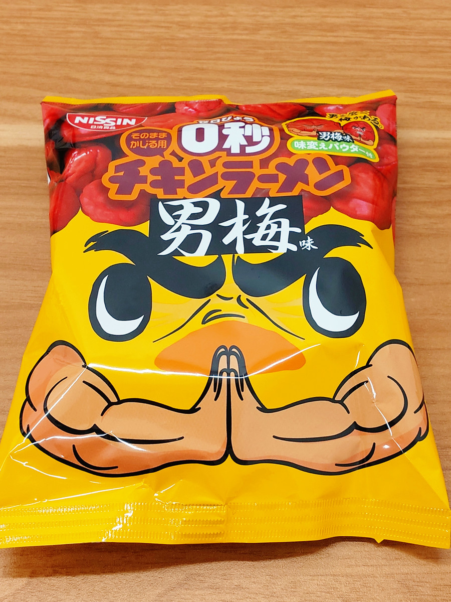 Next, I tried ‘0 Second Chicken Ramen with Otome Ume Powder’. The chick on the package had a dark face like Otome Ume.