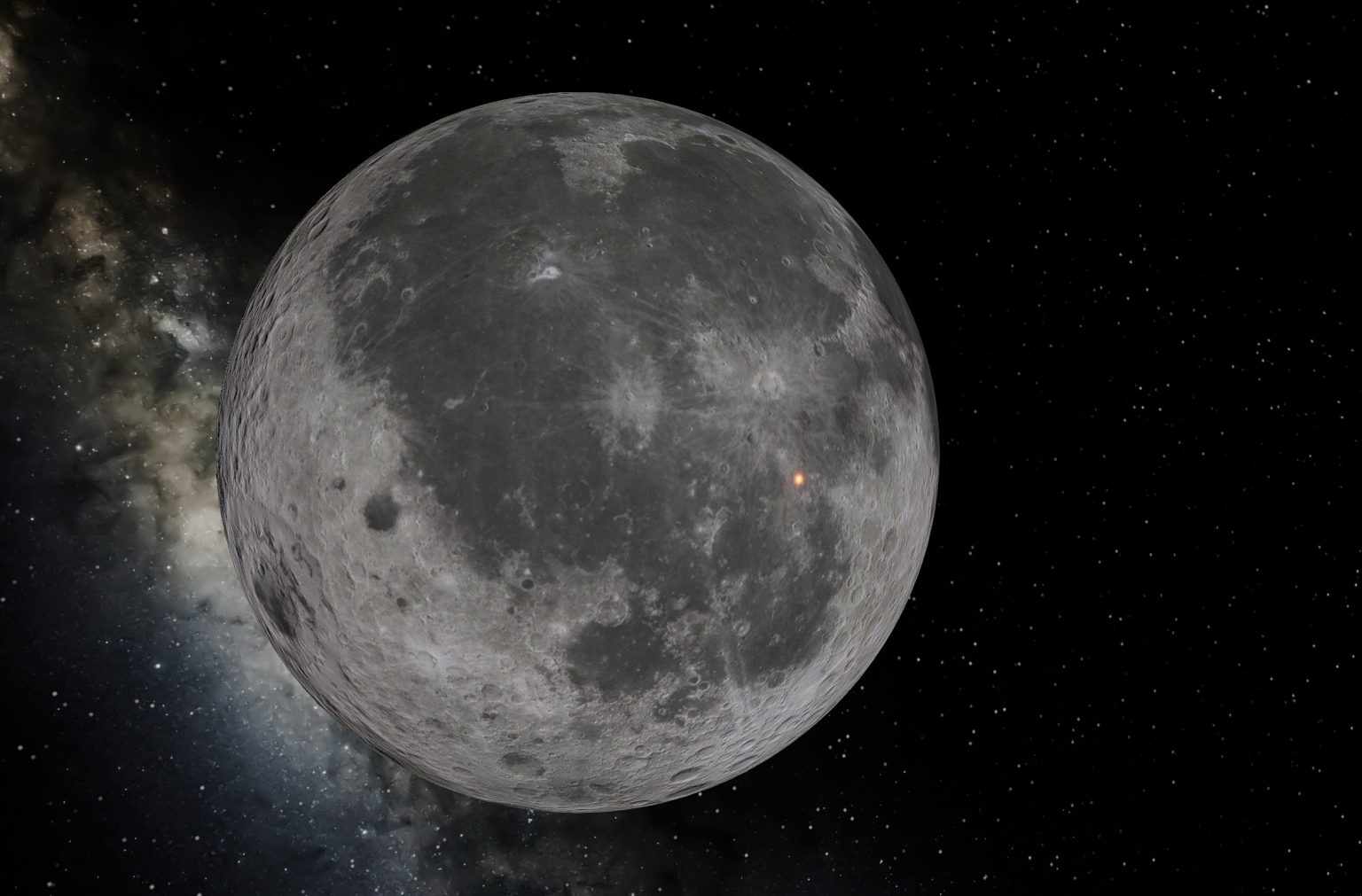 Simulation of a 60-meter asteroid hitting the moon’s surface in 2032. The bright spot is the approximate size of a one-second flash, which will be similar in power to a thermonuclear explosion. Source: Universe Sandbox