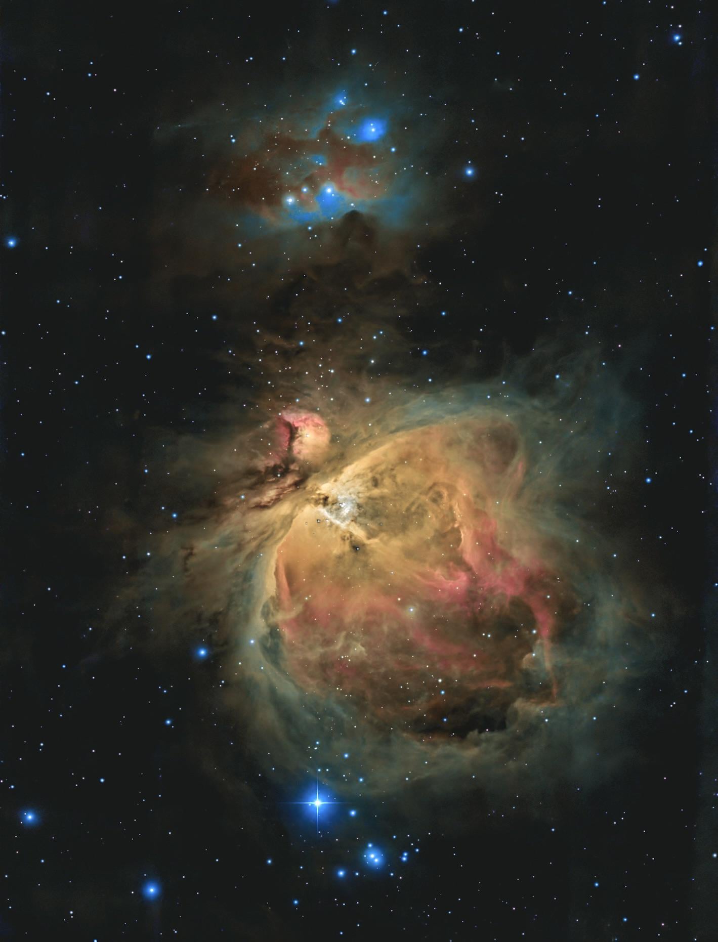 At the top is the first Running Man Nebula (NGC 1977) and at the bottom is the open star cluster NGC 1980 and Iota Orionis (the bright star system at the bottom of M42).