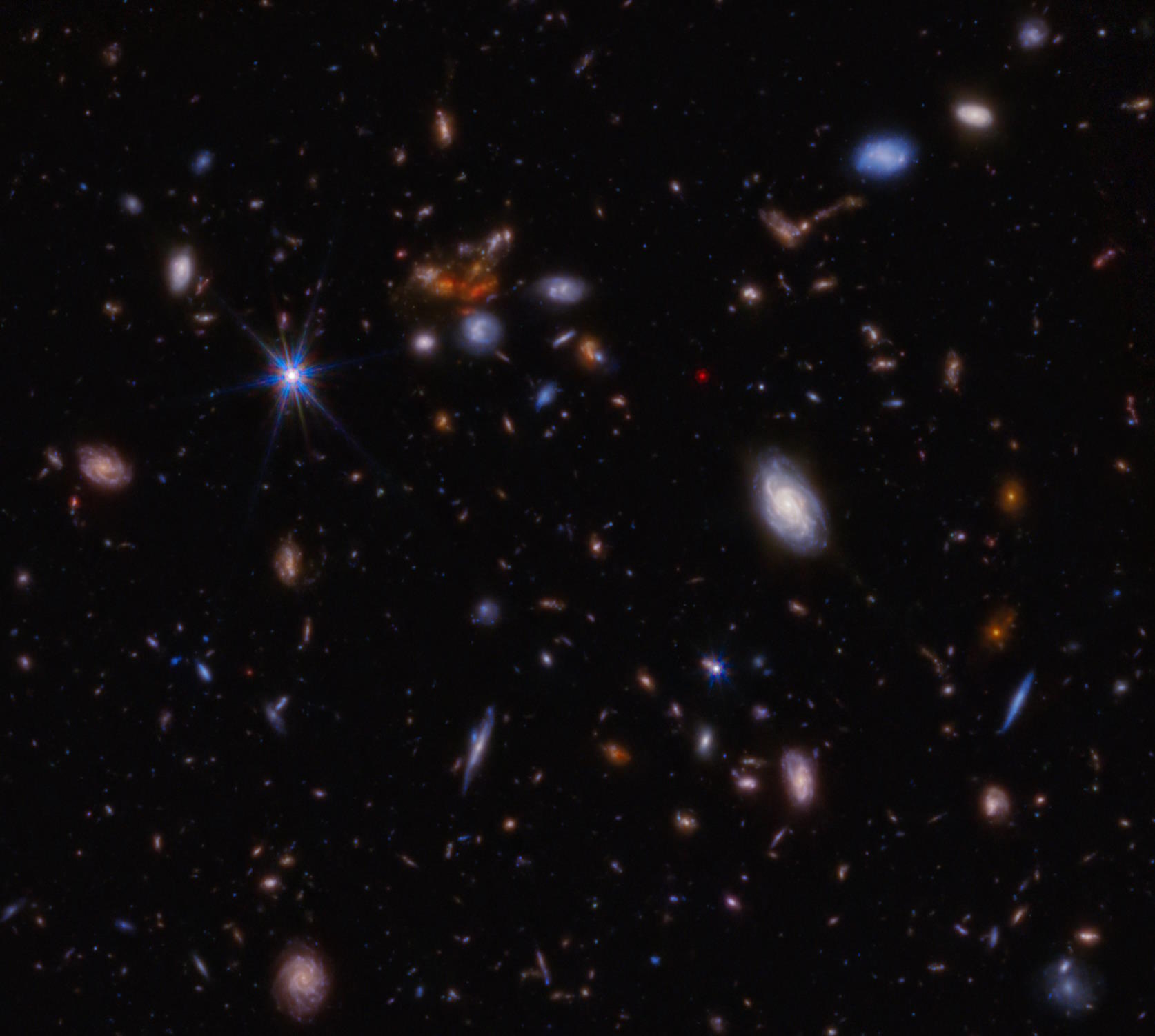 This tiny fraction of the JADES survey area, taken with JWST’s NIRCam instrument, showcases relatively nearby galaxies in detail, galaxies at intermediate distances that appear grouped together, and even ultra-distant galaxies that may be interacting or forming stars, despite their faint nature and red appearance. Even though we’ve been performing JWST science for over two years, we are only beginning to probe the full richness of the cosmos with JWST.