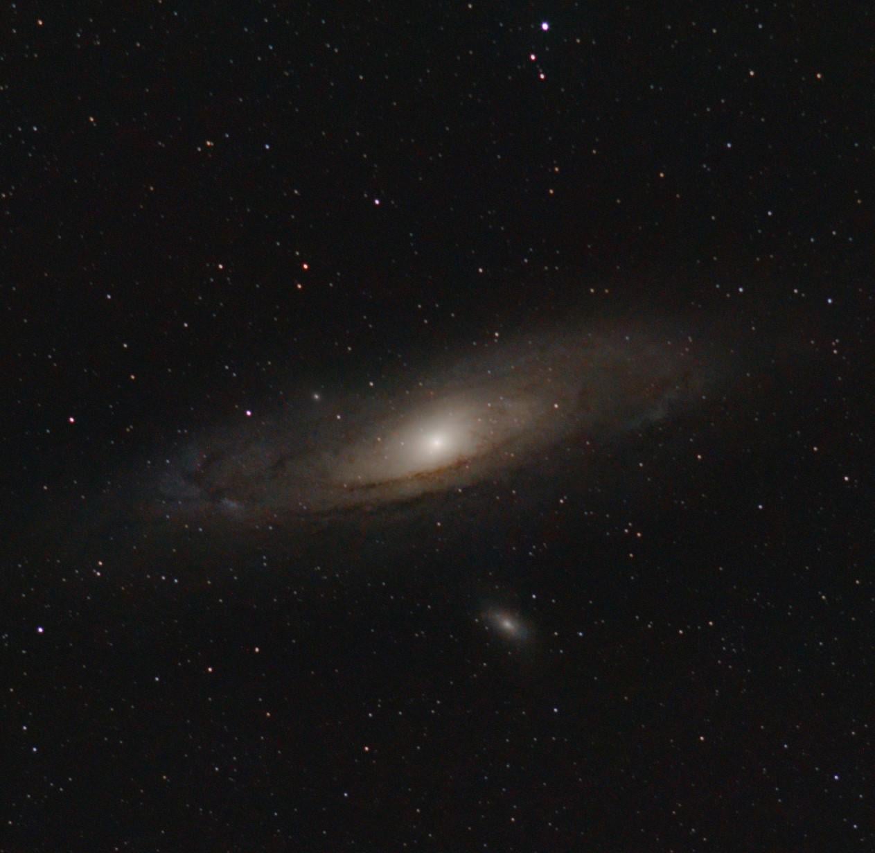 Untracked Canon EOS Rebel SL3. Bortle 4, 200mm lens, f/2.8, ISO 6400, .8 seconds x 1,000 (13 minutes total).