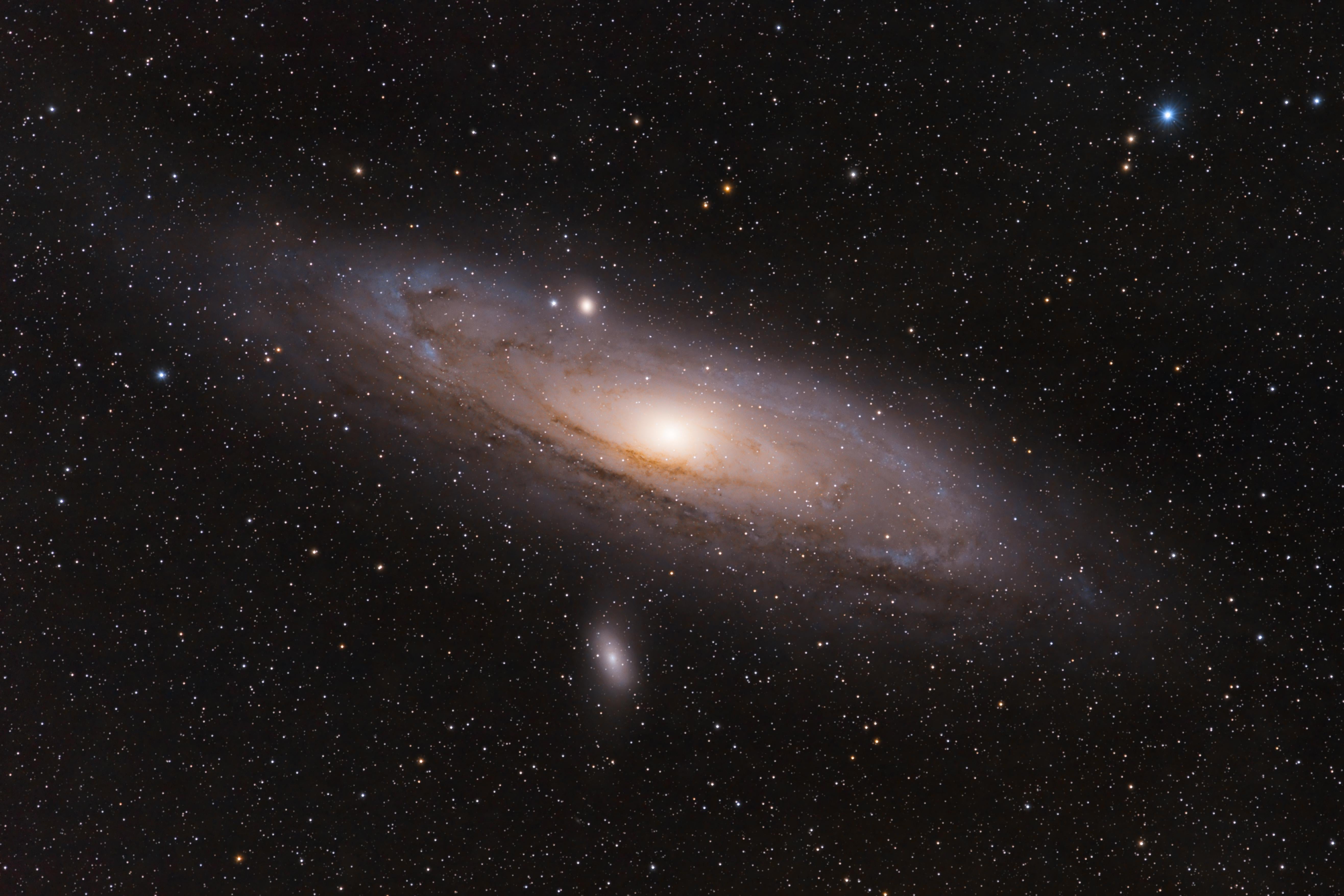 I took 150 subs of 90s (so 3h 45m total) in two evenings here in southern germany and calibrated them using a total of 20 darks, 20 flats and 20 darkflats.