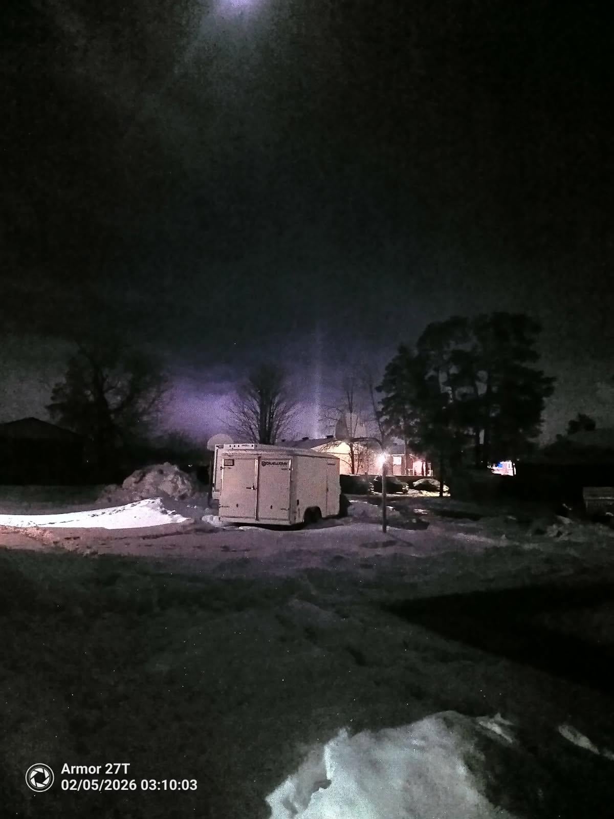 Ice pillar? https://en.wikipedia.org/wiki/Light_pillar