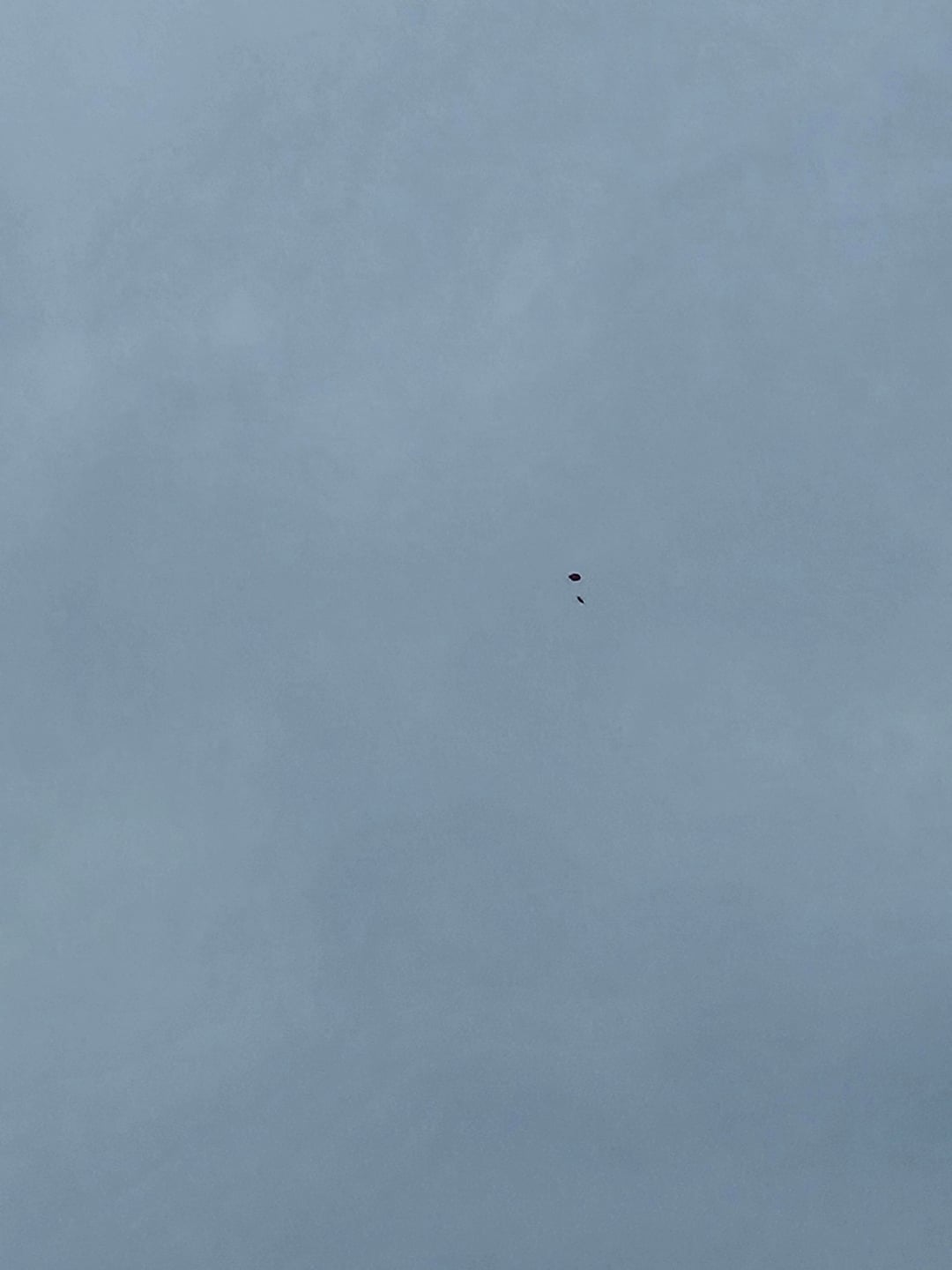 These objects seemed very high and far away, higher then a plane, and were moving very fast in a very smooth manner in a straight line getting further away with no visable turbulence and the disc shaped object was almost spinning whilst also circling the smaller object. It was visable with the naked eye. I thought I had a perfect video but it turnt out I was just taking a picture instead