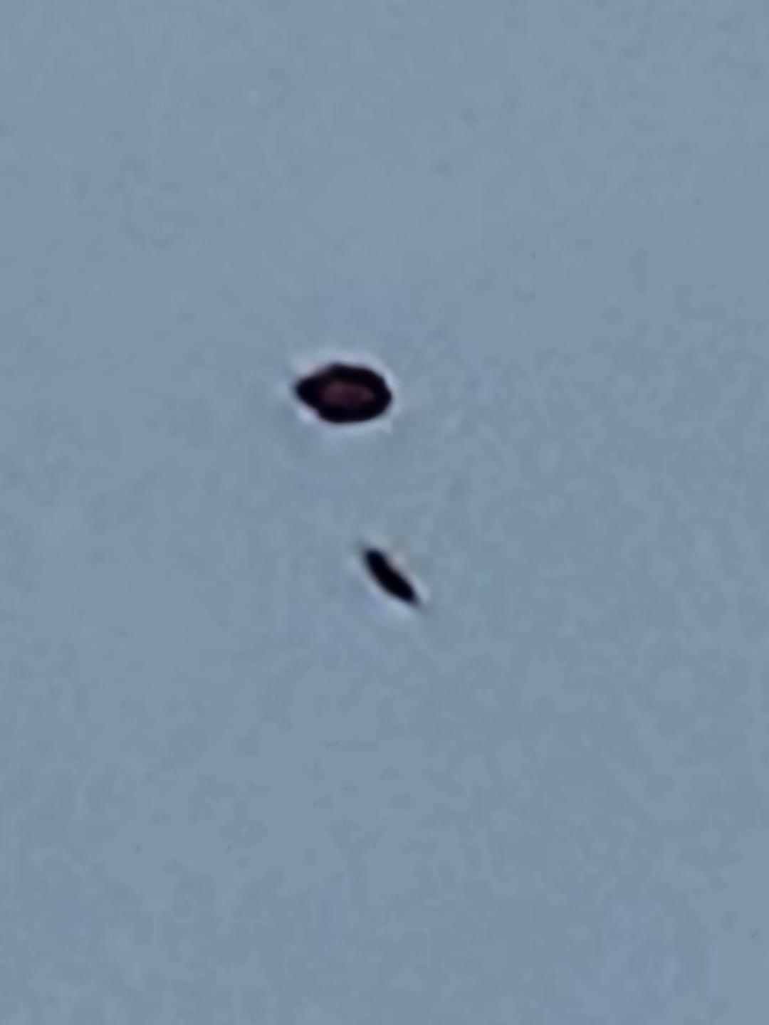 The motion and shapes looked strange which is why is caught my attention. One looked bigger then the other and was disc shaped. The motion of the bigger one was unusual it seemed to be spinning and also orbiting the smaller one somewhat. They seemed further away then a plane and were moving faster. They seemed to big to be birds. They could perhaps of been a parachute or some sort of baloon. I really wish I’d taken that video