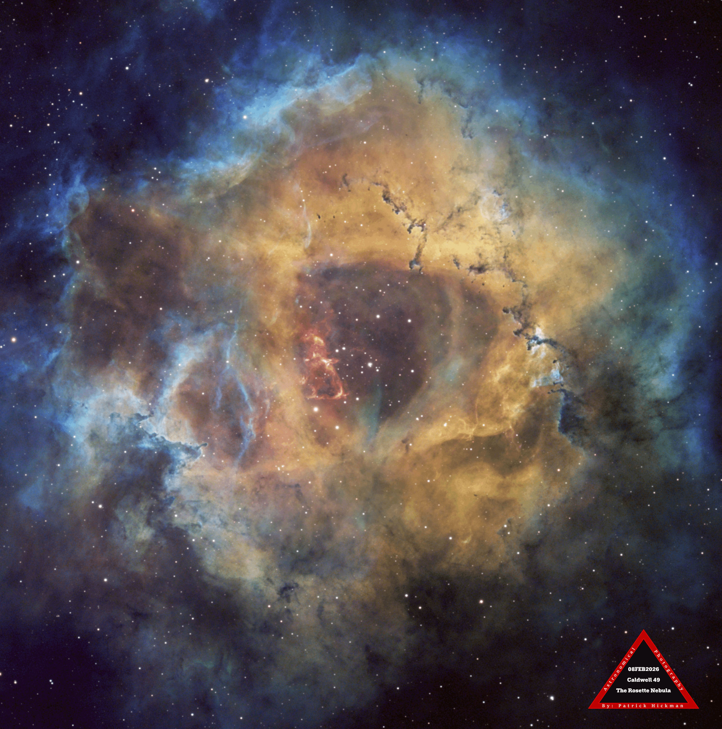 Star forming region ~5000 light years away from earth and ~150 light years across. It surrounds NGC2244, a cluster of stars in the Monoceros constellation. These stars were formed from the nearby gas and dust. The nebula's rose shape is from the stellar winds blowing out. The colors are from the gas and dust atoms being irradiated by the stars they're surrounding like how neon signs work making this an "emission nebula". The pillars are believed to be the active star forming regions. It's easily one of the most photogenic and photographed nebula out there🤯😍🤯😍