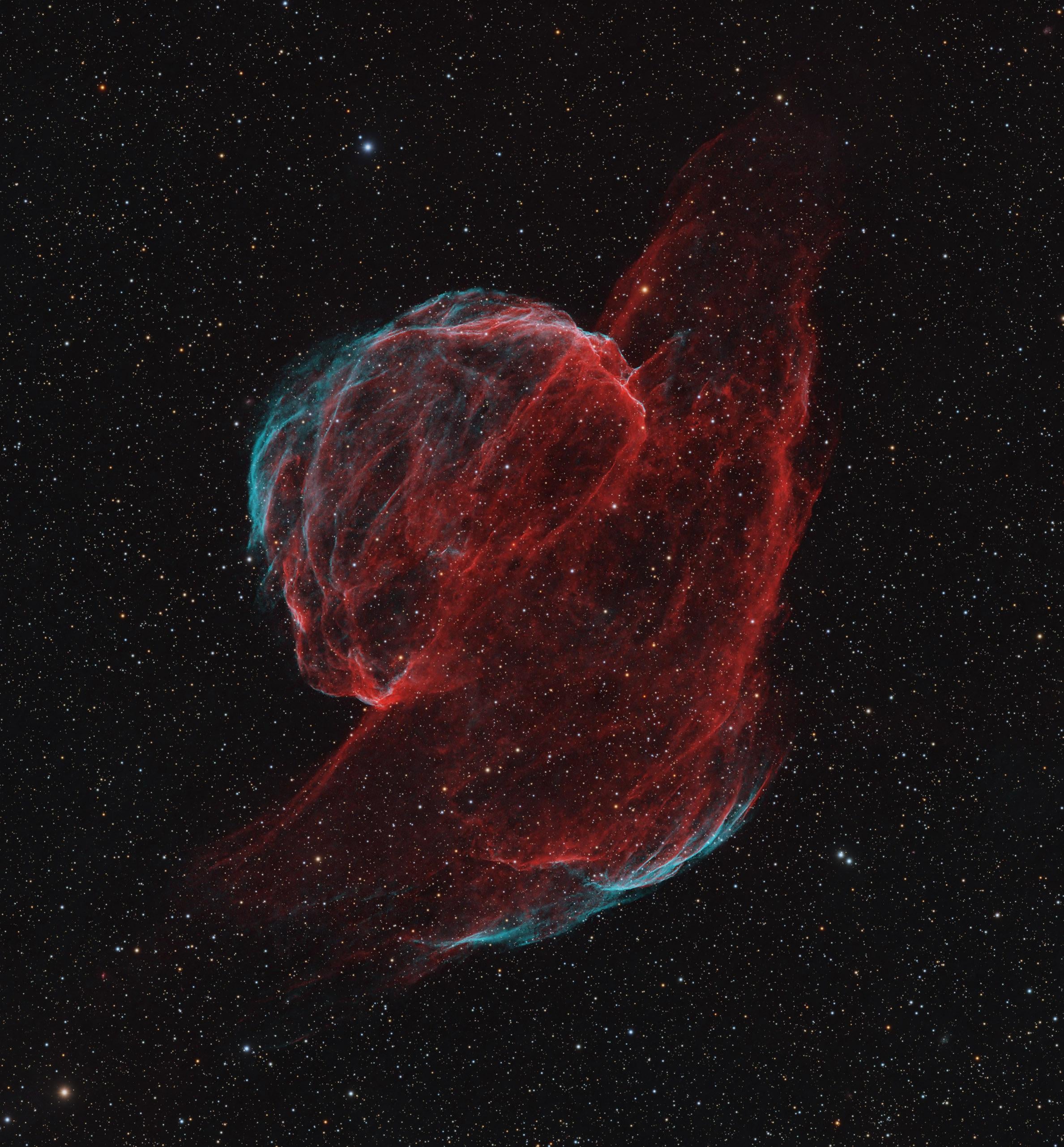 Very cool (and very dim!) nebula. Took a whole lof of Oiii exposure to bring out any details. Taken from my Driveway in Roxborough, CO.