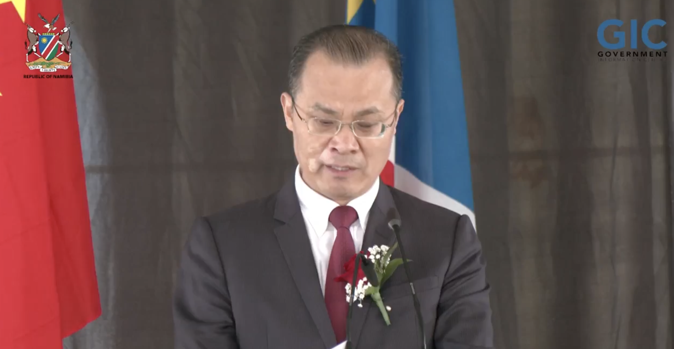 Zhao Weiping, Chinese Ambassador to Namibia, delivering his address