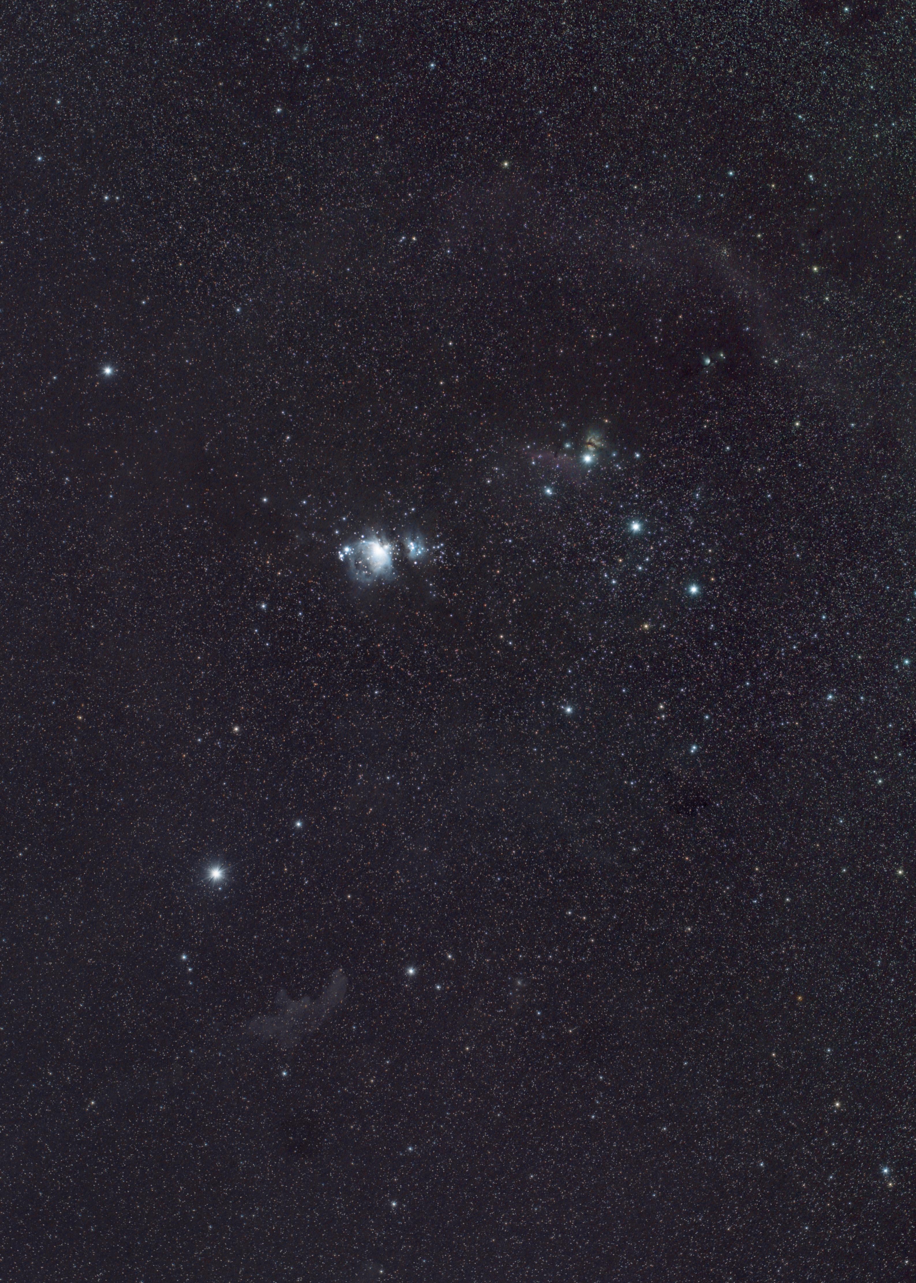 This is the longest exposure time I've done with this lens, and I was pleasantly surprised to see the Witch Head nebula and traces of Barnard's Loop.