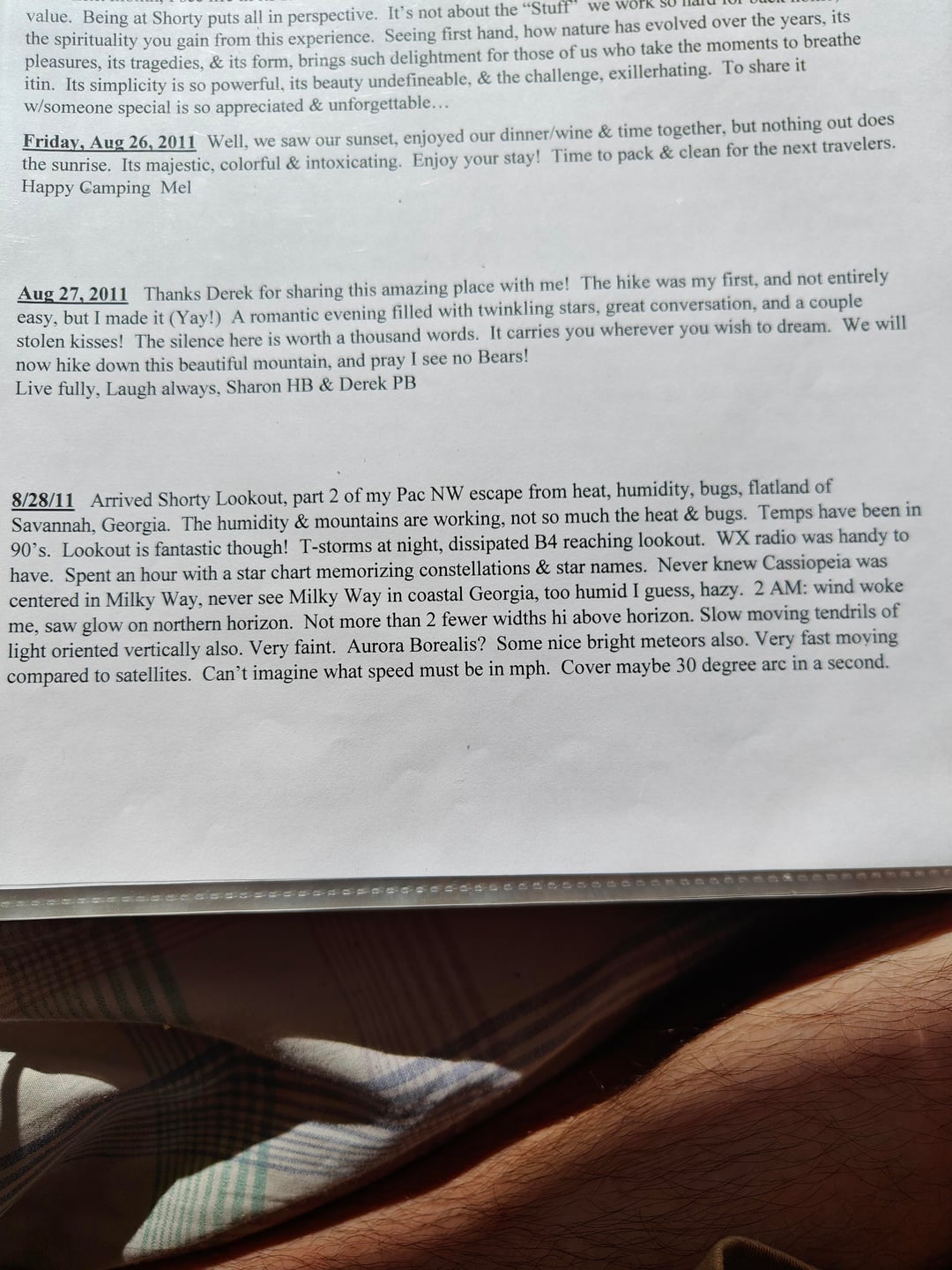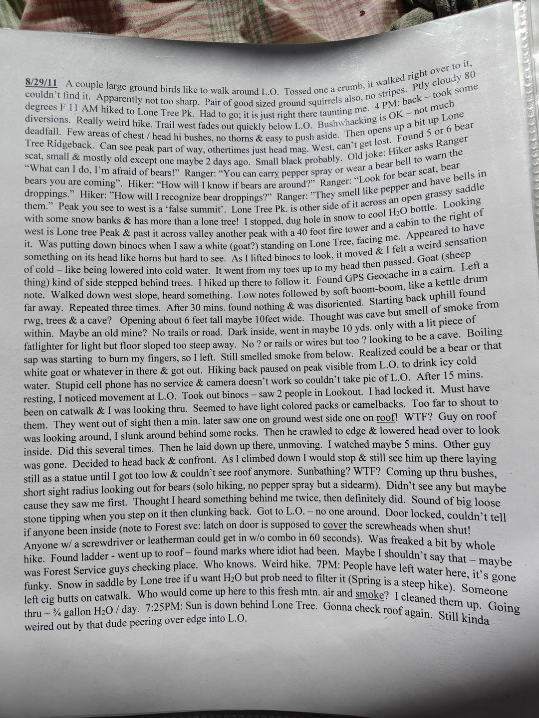 Every summer I stay at a different fire lookout tower. This log is from 2011 at Garver Mountain lookout. I stayed there in '23.
