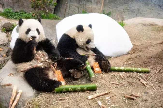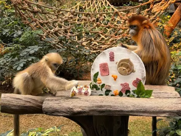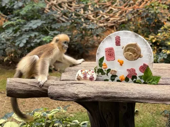 The Sichuan golden snub-nosed monkeys are also getting a fun, refreshing experience thanks to the eye-catching ice sculptures adorned with festive Chinese characters, and playful monkey-shaped treats made of carrots and fibre biscuits specially crafted for them by their caretakers.