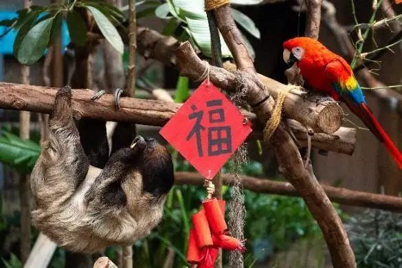 Over at the Sloth and Friends Studio, the Park’s macaws, two-toed sloth Sonic and kinkajou Aviv are having a blast! As new neighbours after the attraction’s upgrade and reopening by the end of 2025, this is their very first Chinese New Year celebration together, and they are making it memorable with colourful treats like paper firecrackers, lanterns, radish peach blossom trees, special Fai Chun bursting with auspicious wishes and even rice cakes lovingly prepared with carrot juice.
