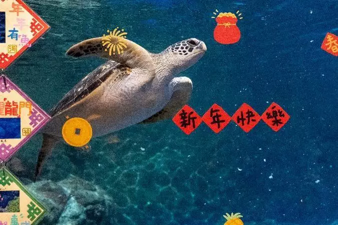 At The Grand Aquarium, the seahorses are getting into the spirit, swimming amidst colourful decorations. They are leading the charge for the Year of the Horse in a splash-tastic spectacle! Joining the festive fun are Taro the green turtle and Fat Ball the pufferfish, making waves with the celebratory adornments throughout their aquatic home.