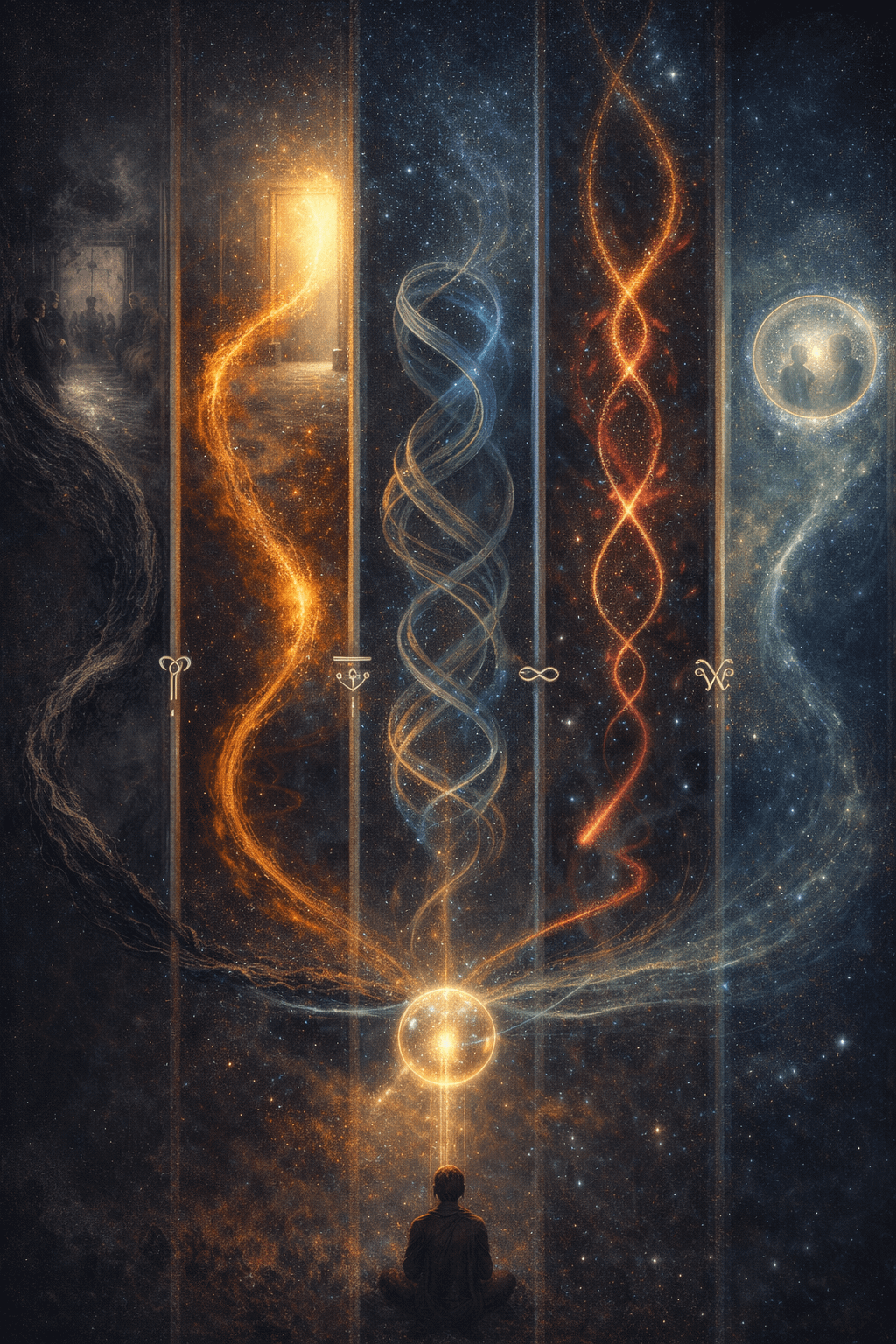 | 🌀 + 🝰 | Field Interior | A space that feels like stepping inside someone’s thought—with both of you still outside. | Quiet galleries, lucid dreams, empathy without story. |